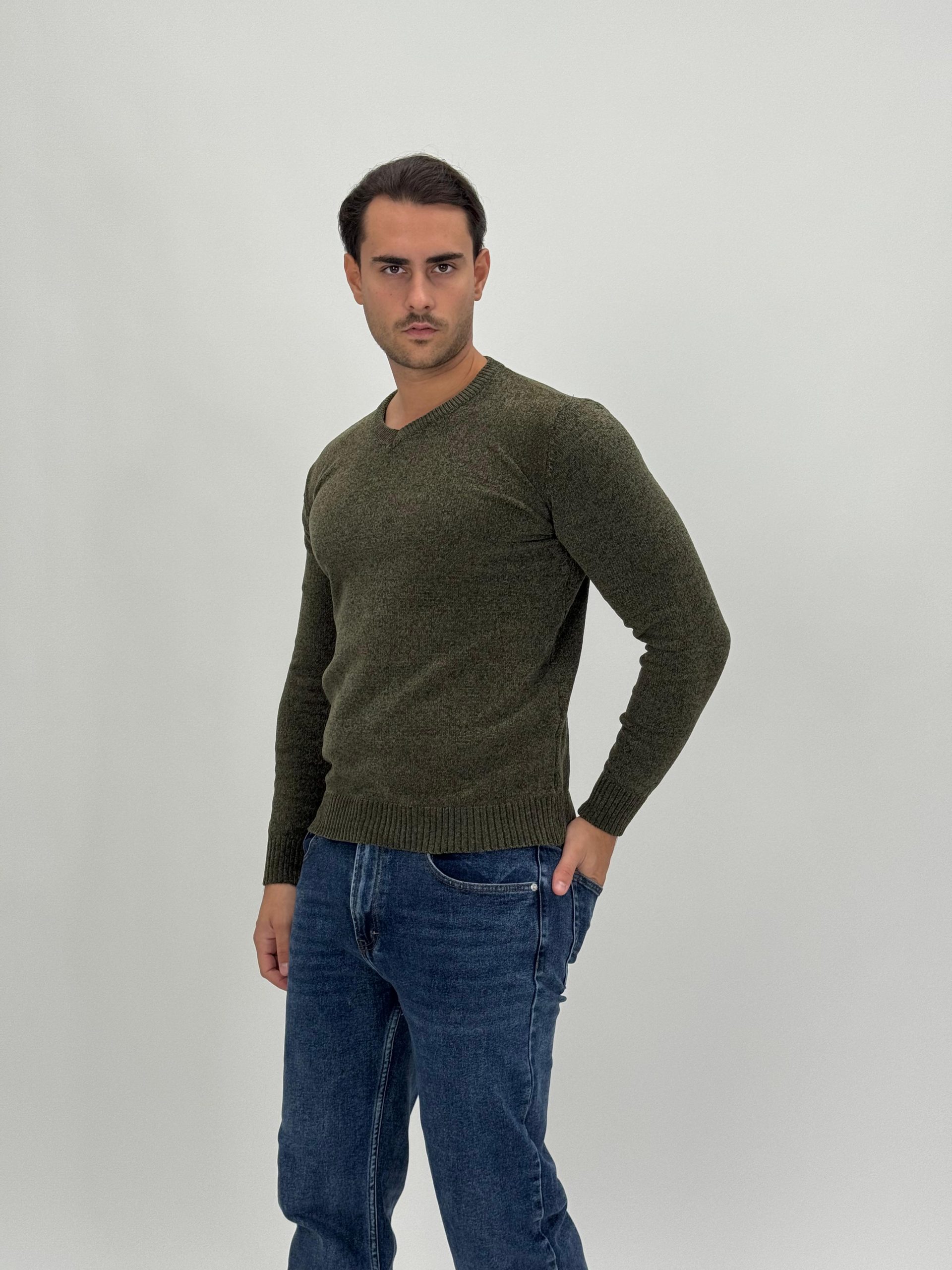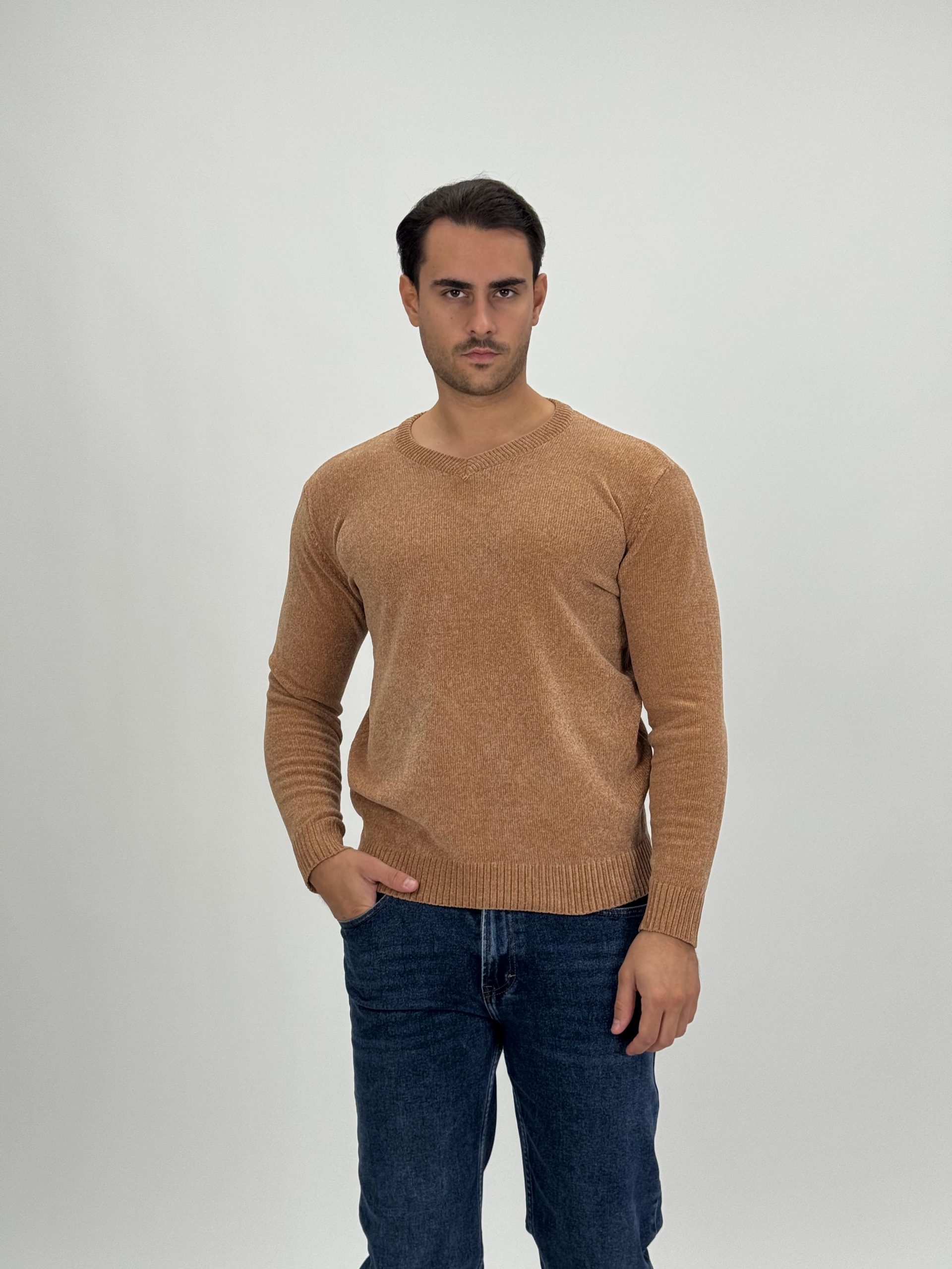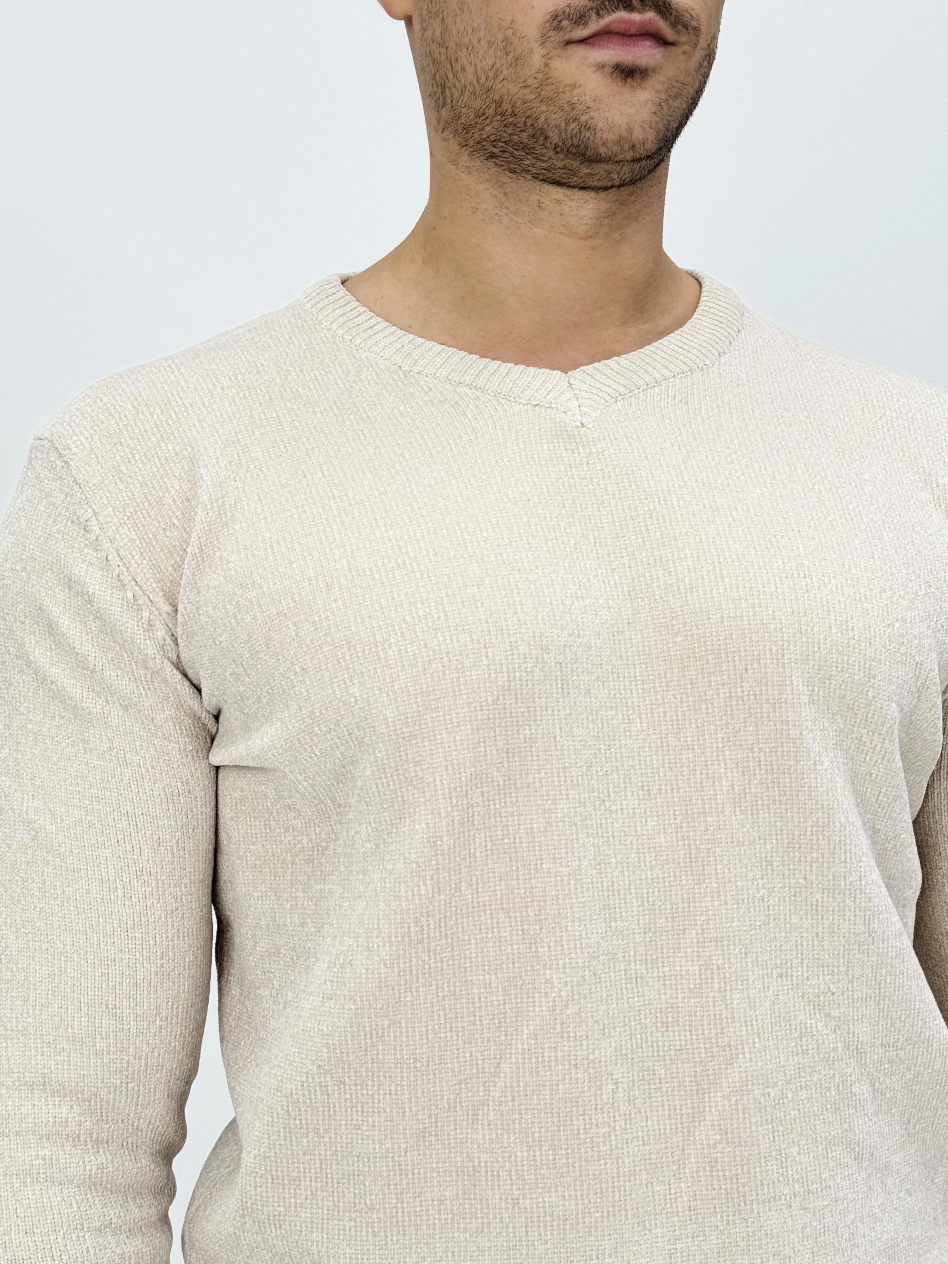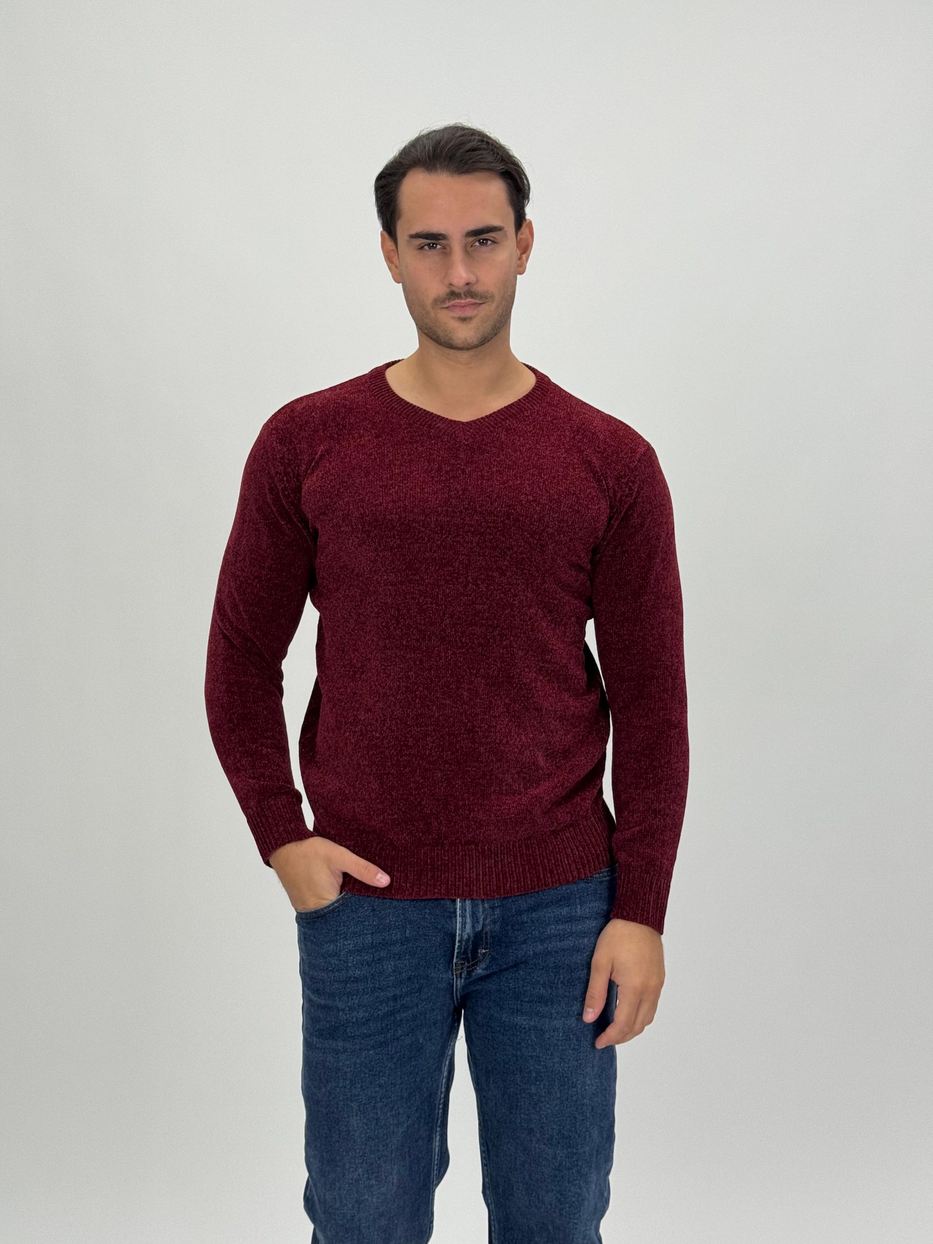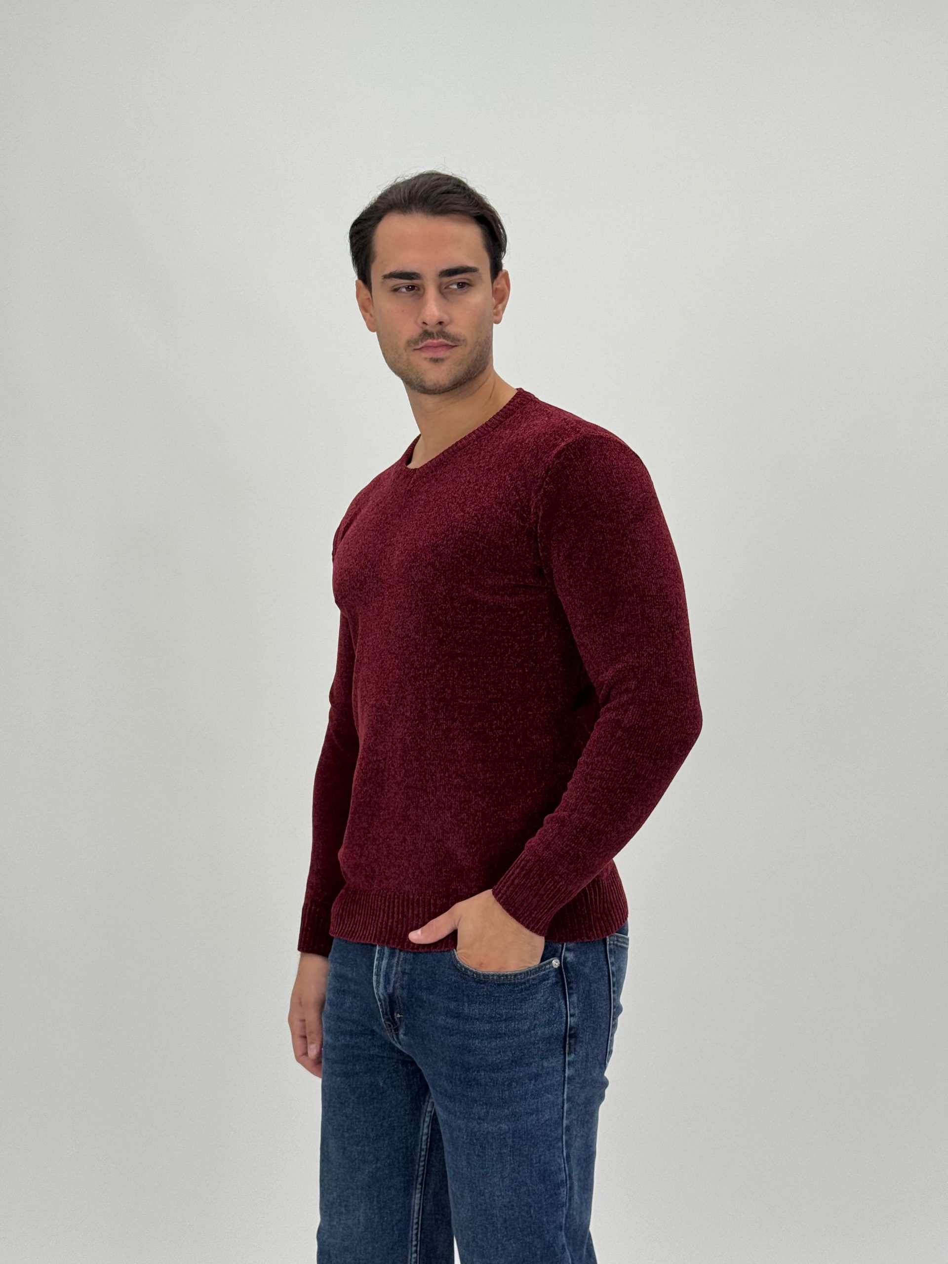 Puloverul din catifea cu decolteu în V combină luxul materialului cu versatilitatea designului, oferind un look modern și rafinat.