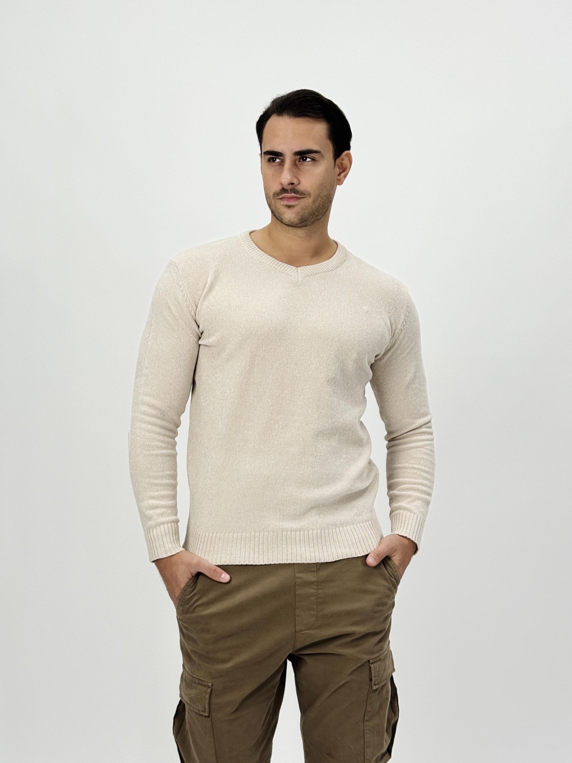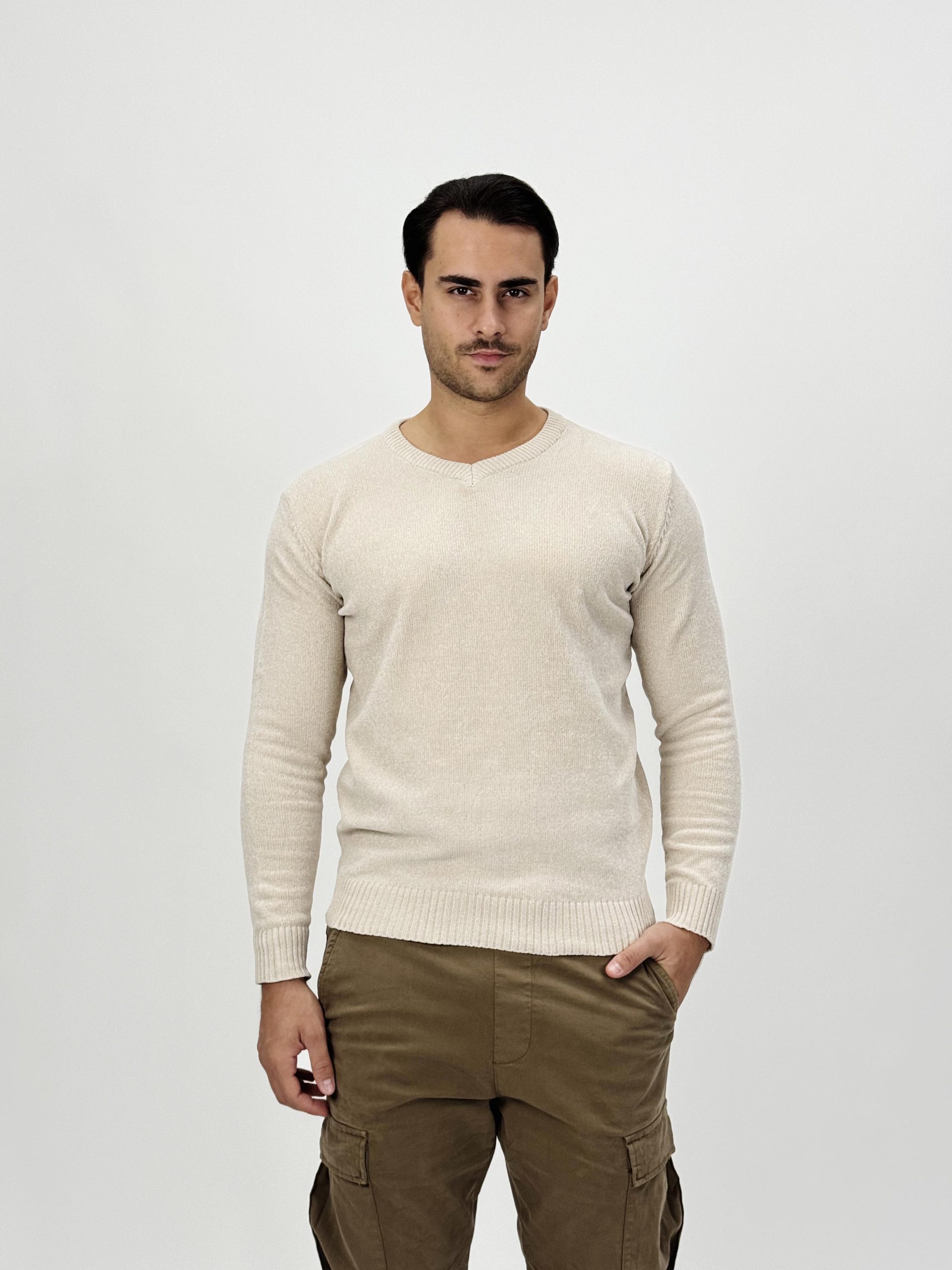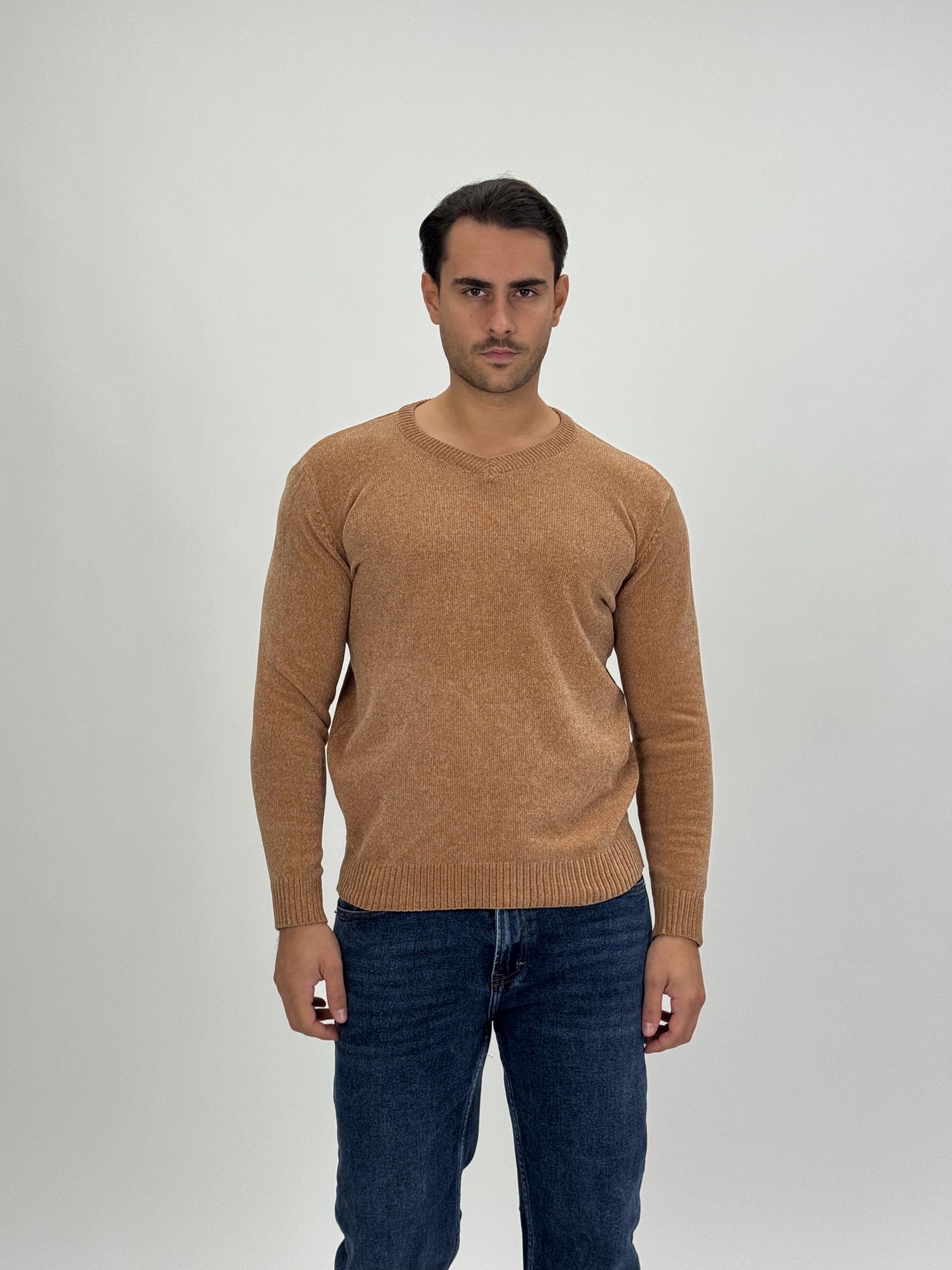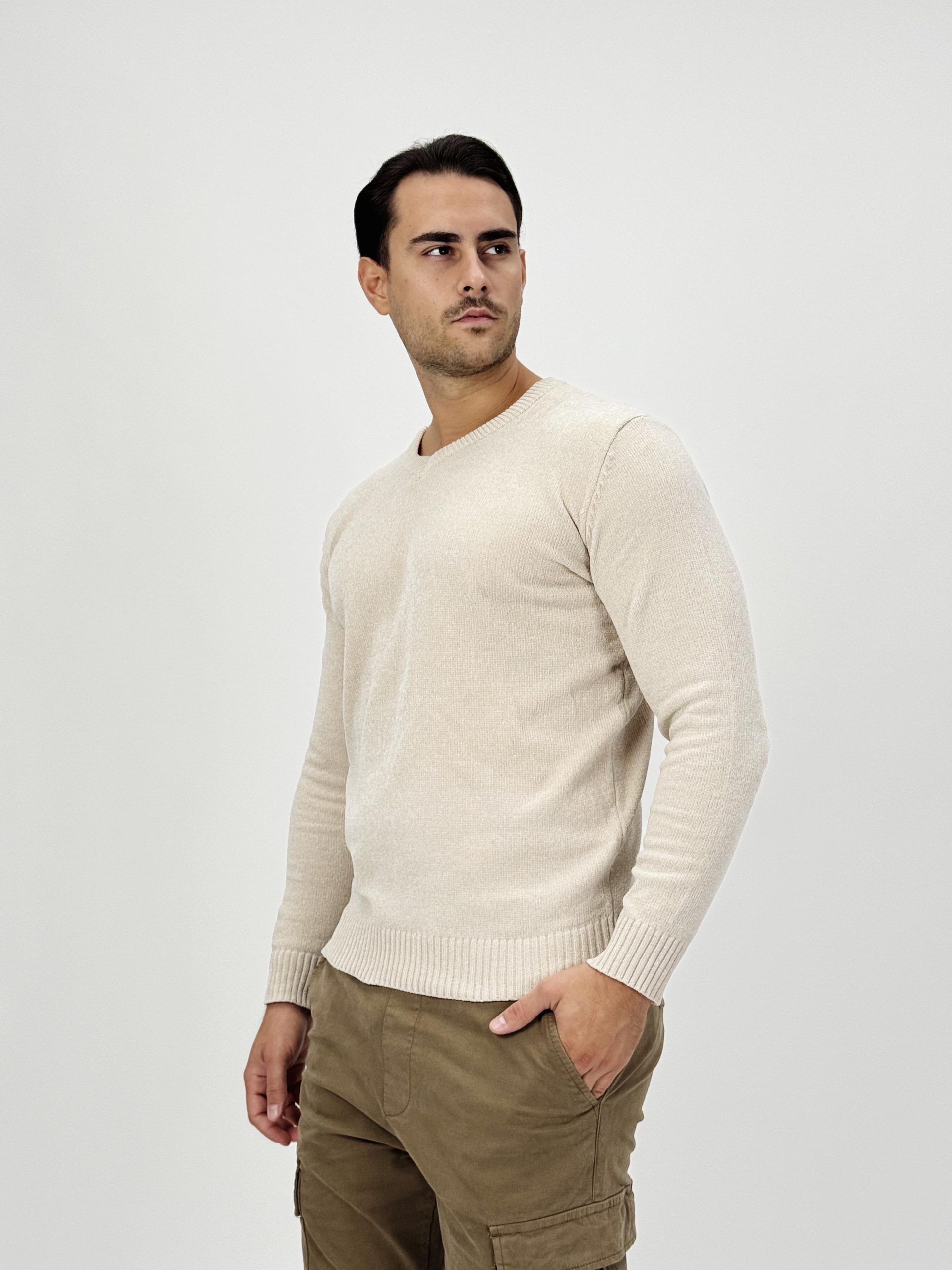 Puloverul din catifea cu decolteu în V combină luxul materialului cu versatilitatea designului, oferind un look modern și rafinat.