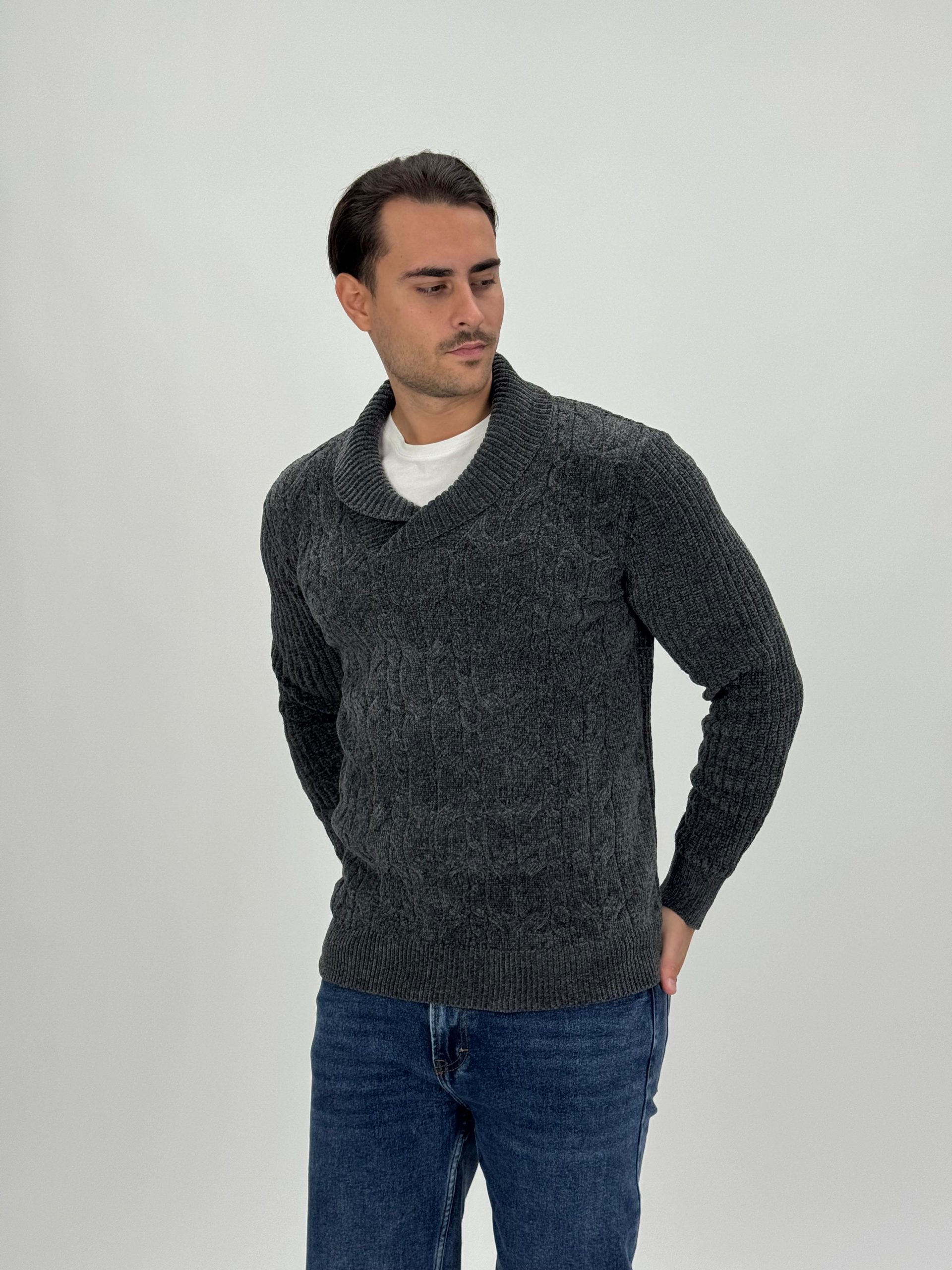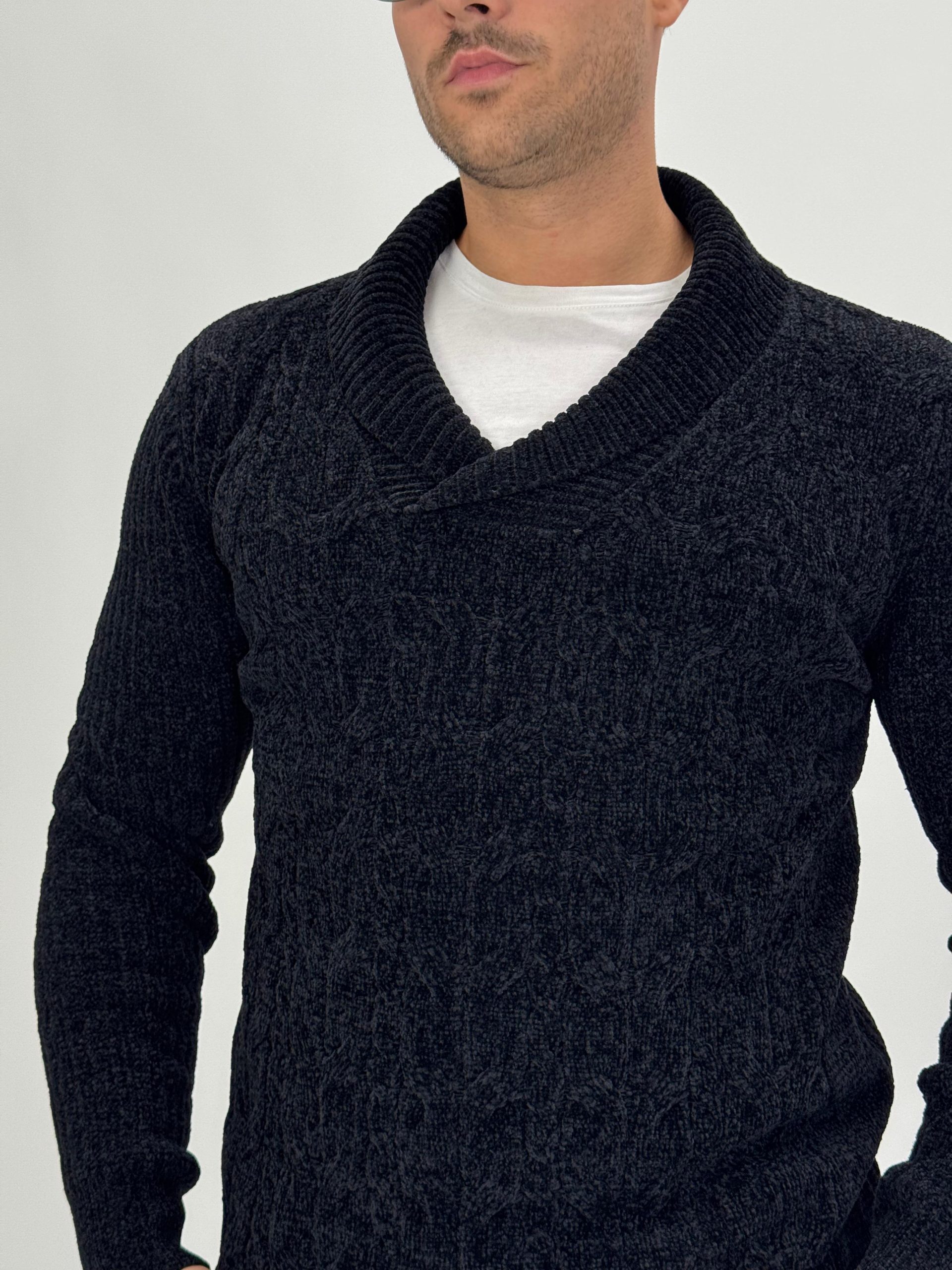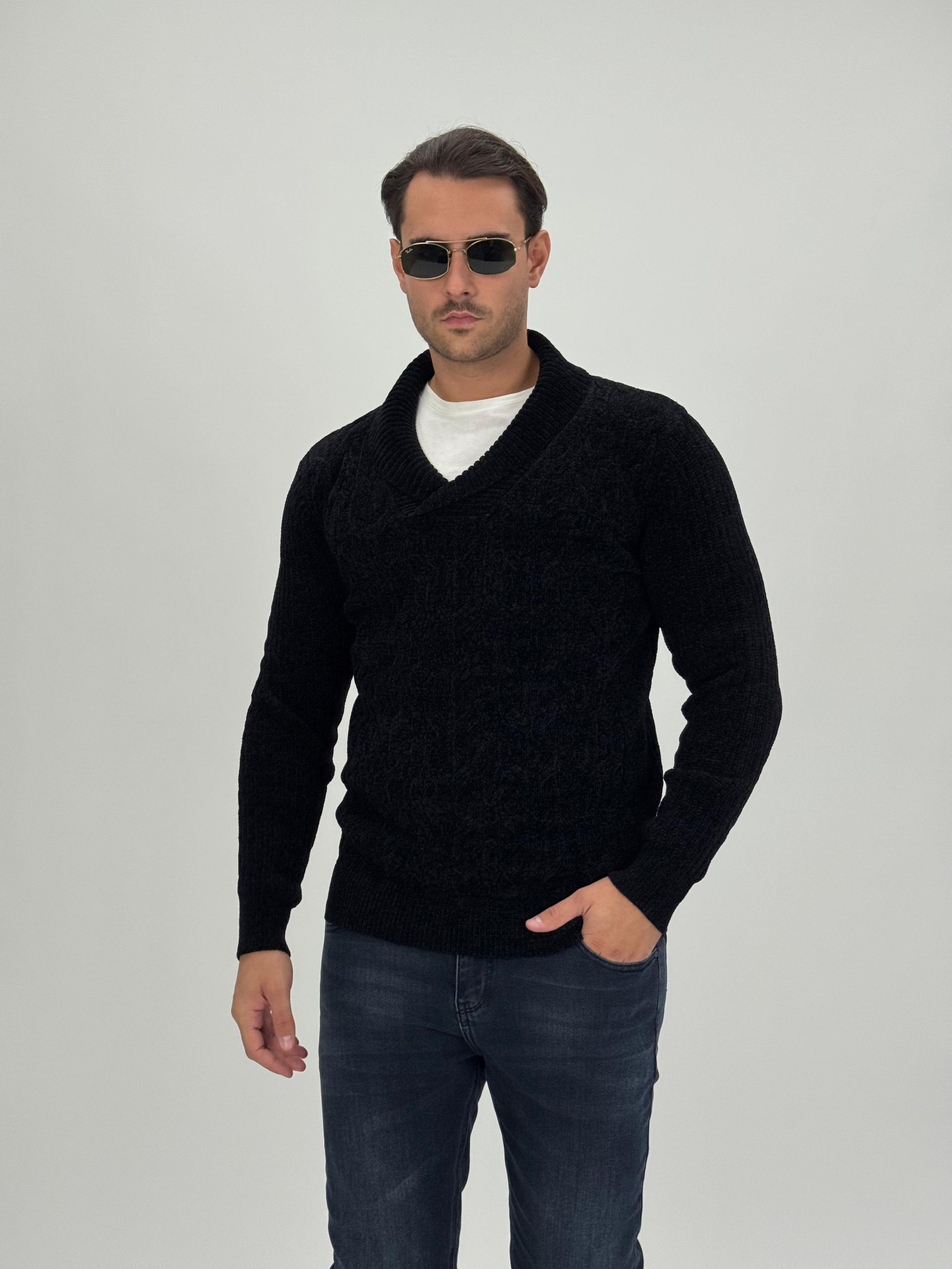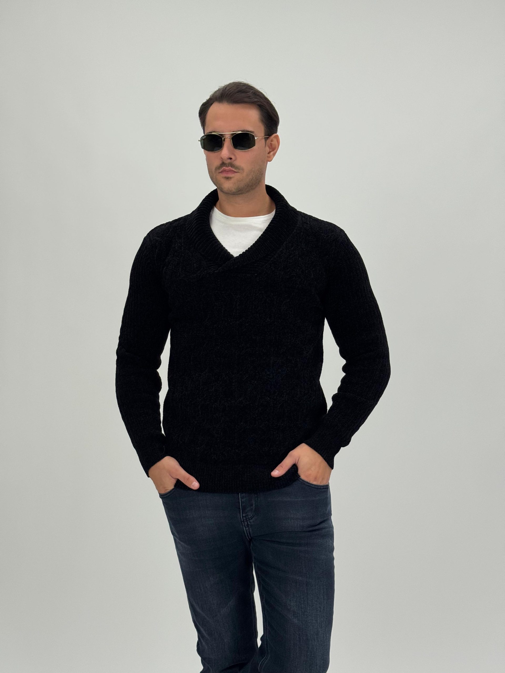 Pulover din Catifea cu Guler Petrecut – Eleganță și Confort