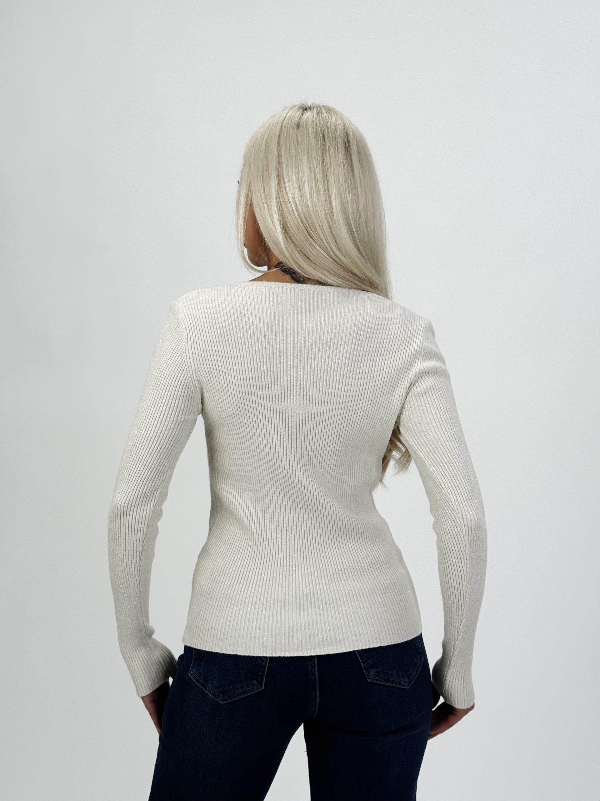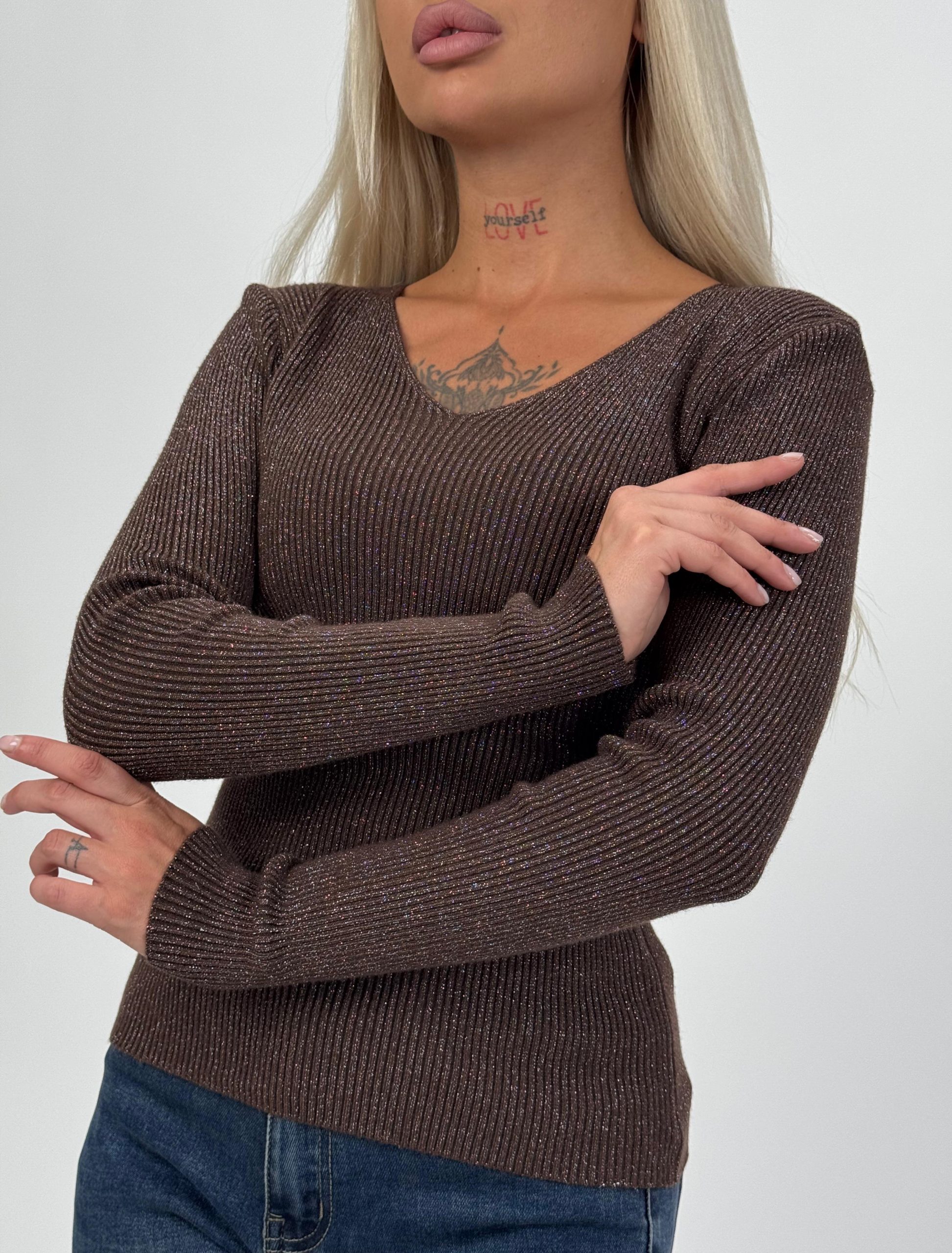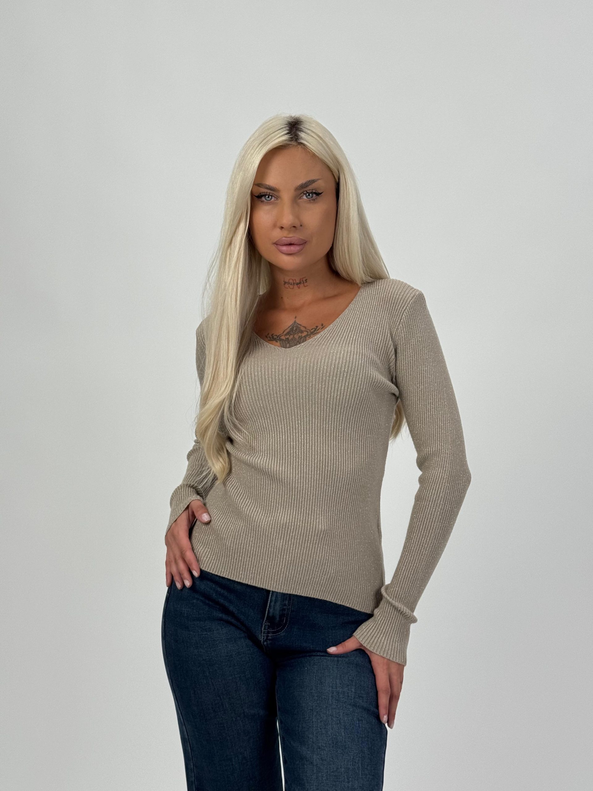Pulover din Jerse Rigat cu Lurex – Strălucire și Confort