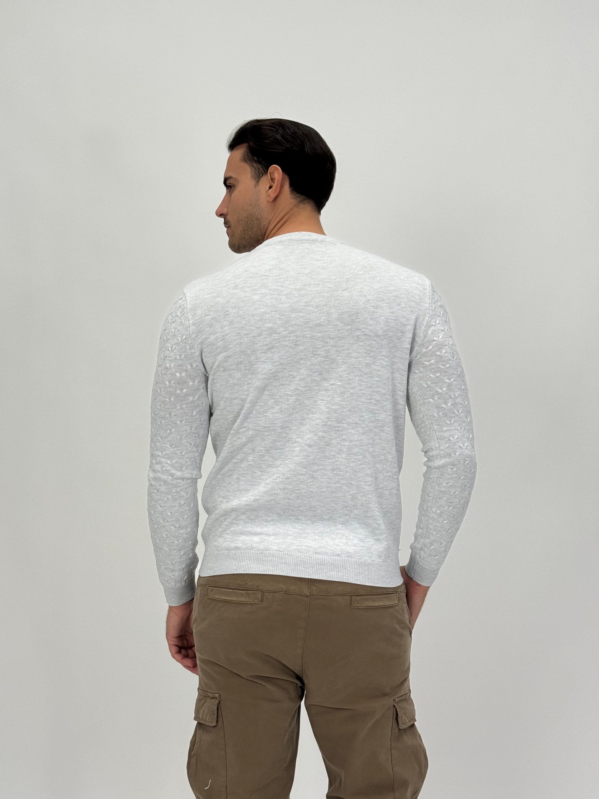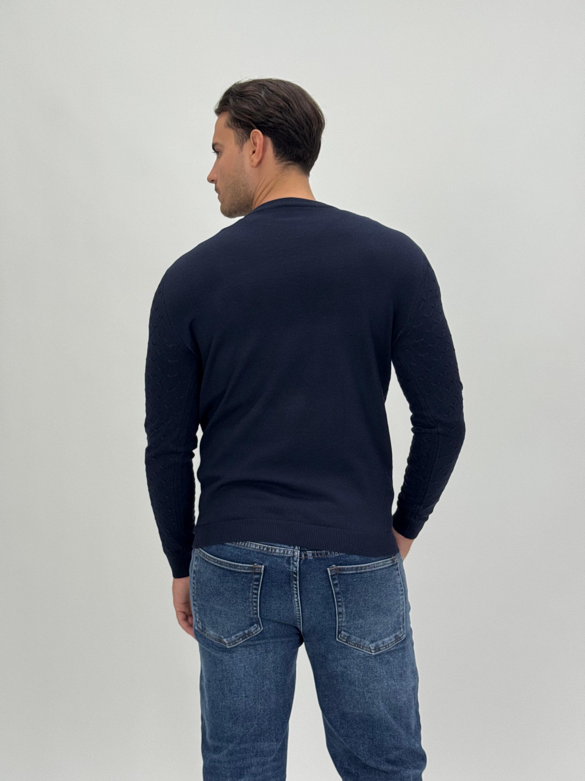 Acest model combină confortul tricotului cu designul modern și detaliile discrete, oferind un look masculin, potrivit pentru orice ocazie.