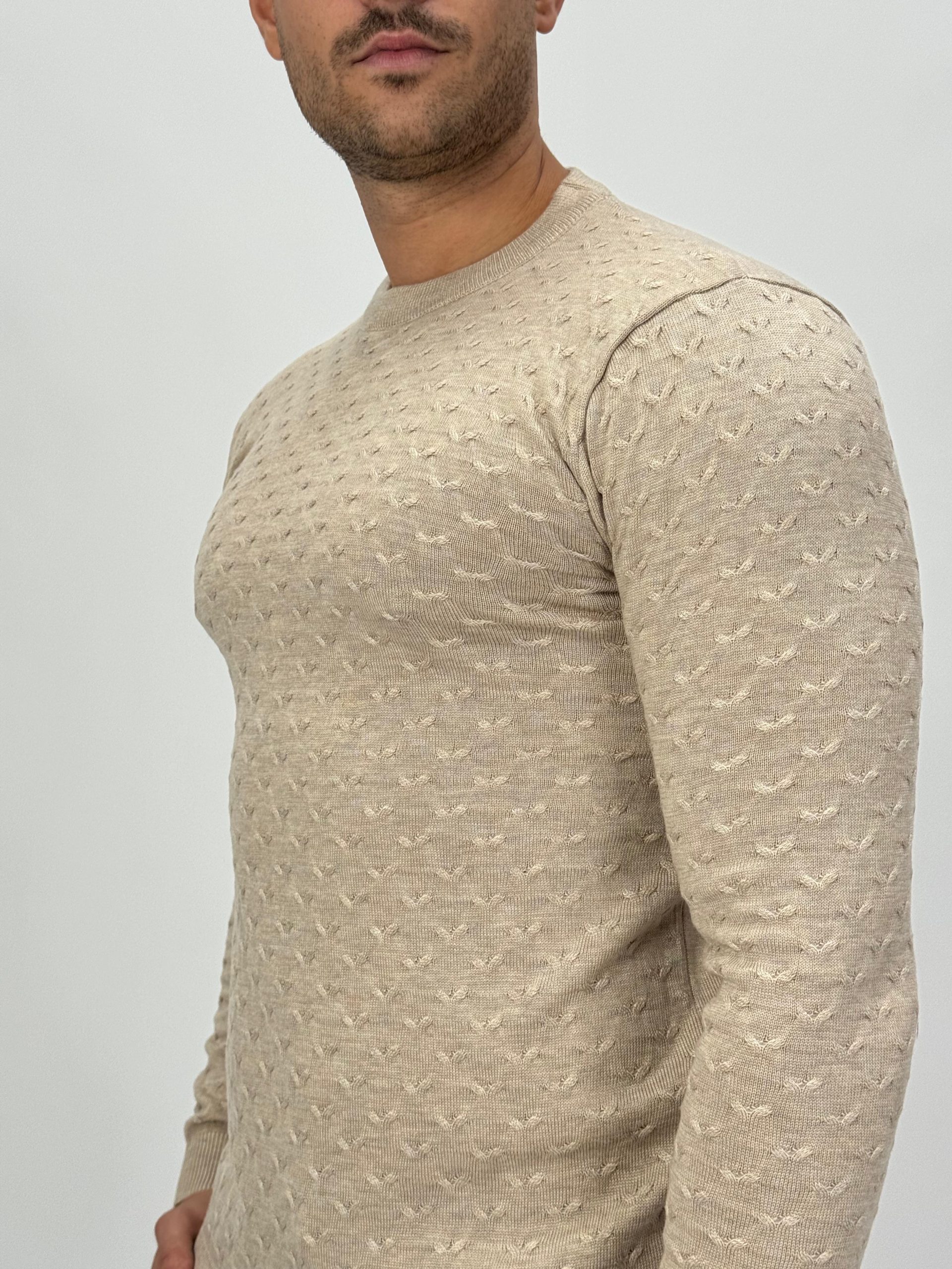 Această piesă este perfectă pentru bărbații care apreciază combinația dintre confort și stil. Puloverul din tricot cu model transformă o ținută simplă într-una modernă și elegantă.