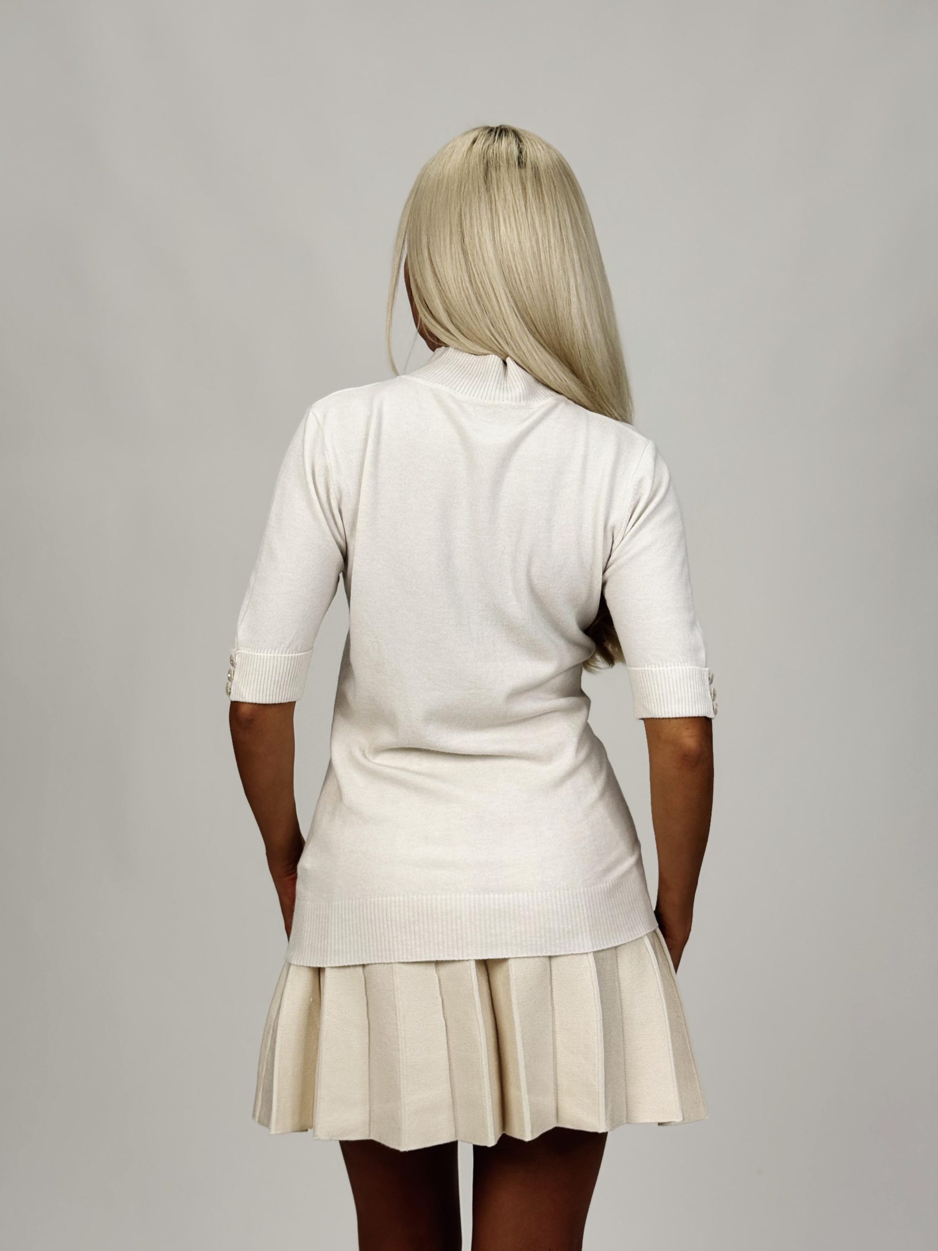 Puloverul helancă cu mânecă scurtă este disponibil acum în colecția Cato.