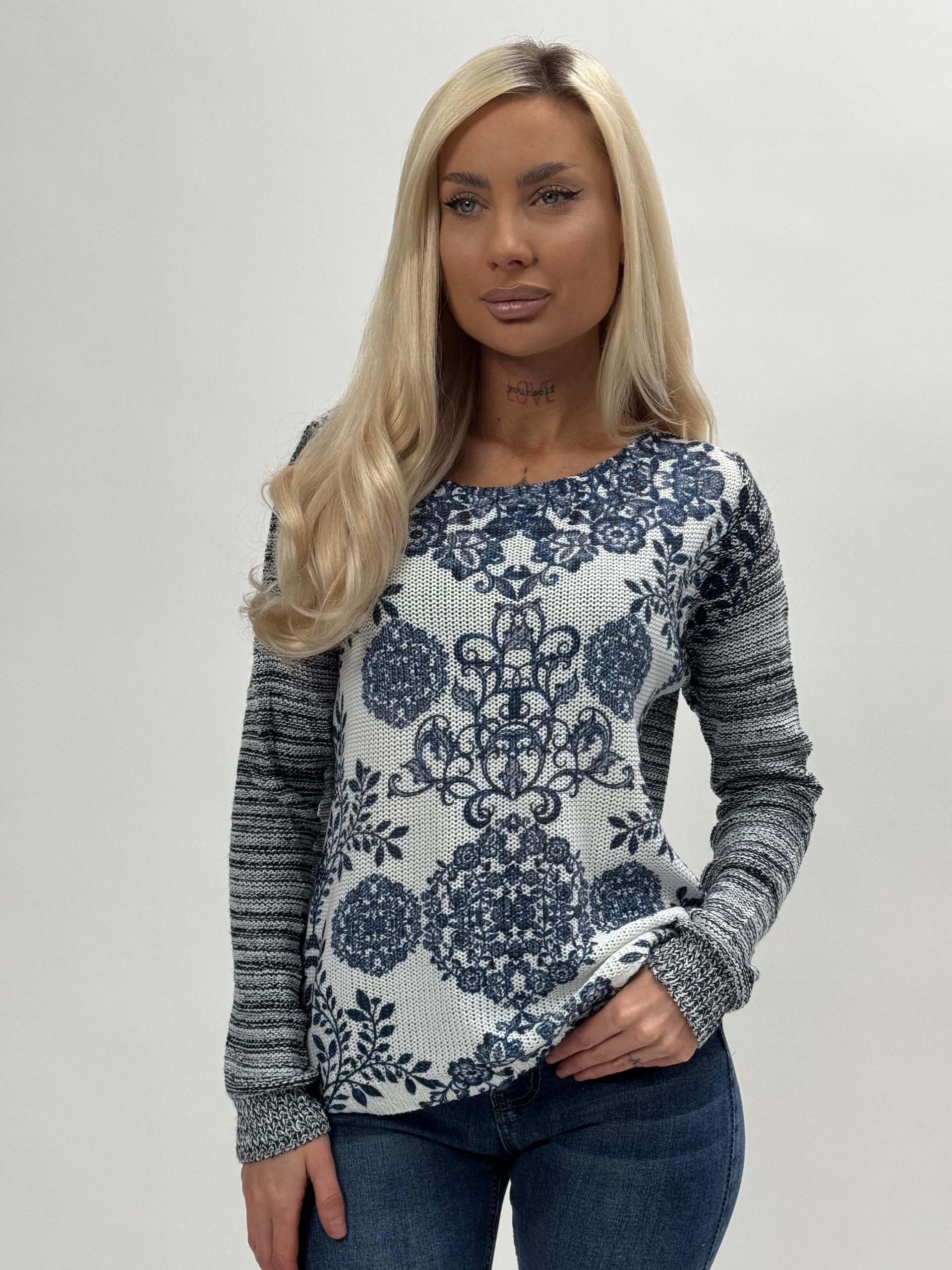 Acest pulover imprimat baroc este o piesă vestimentară deosebită, care aduce un aer de eleganță și rafinatețe în orice garderobă. Cu un design modern, inspirat din stilul baroc, acest pulover este perfect pentru femeile care doresc să îmbine confortul cu un look sofisticat și distinct.