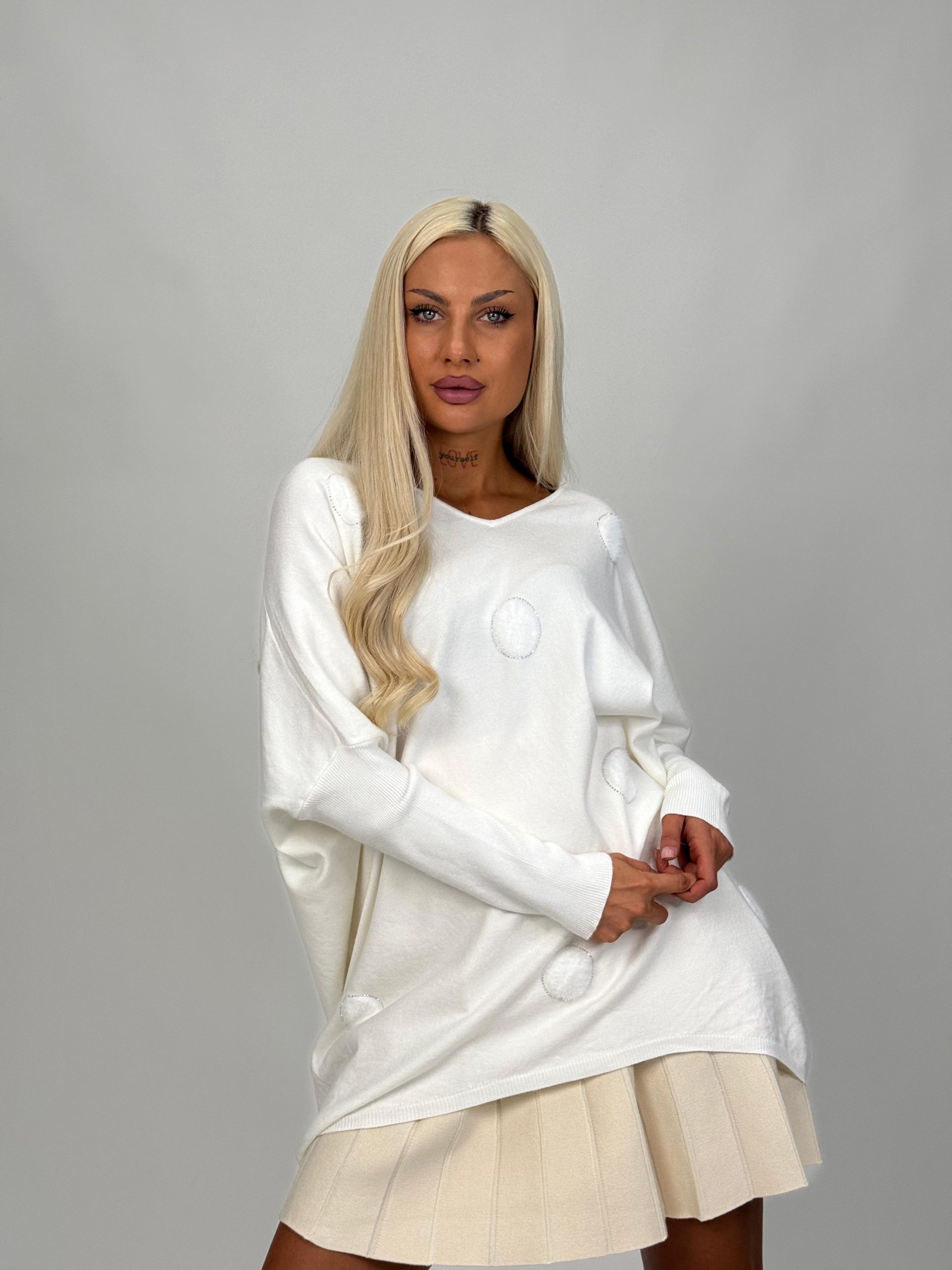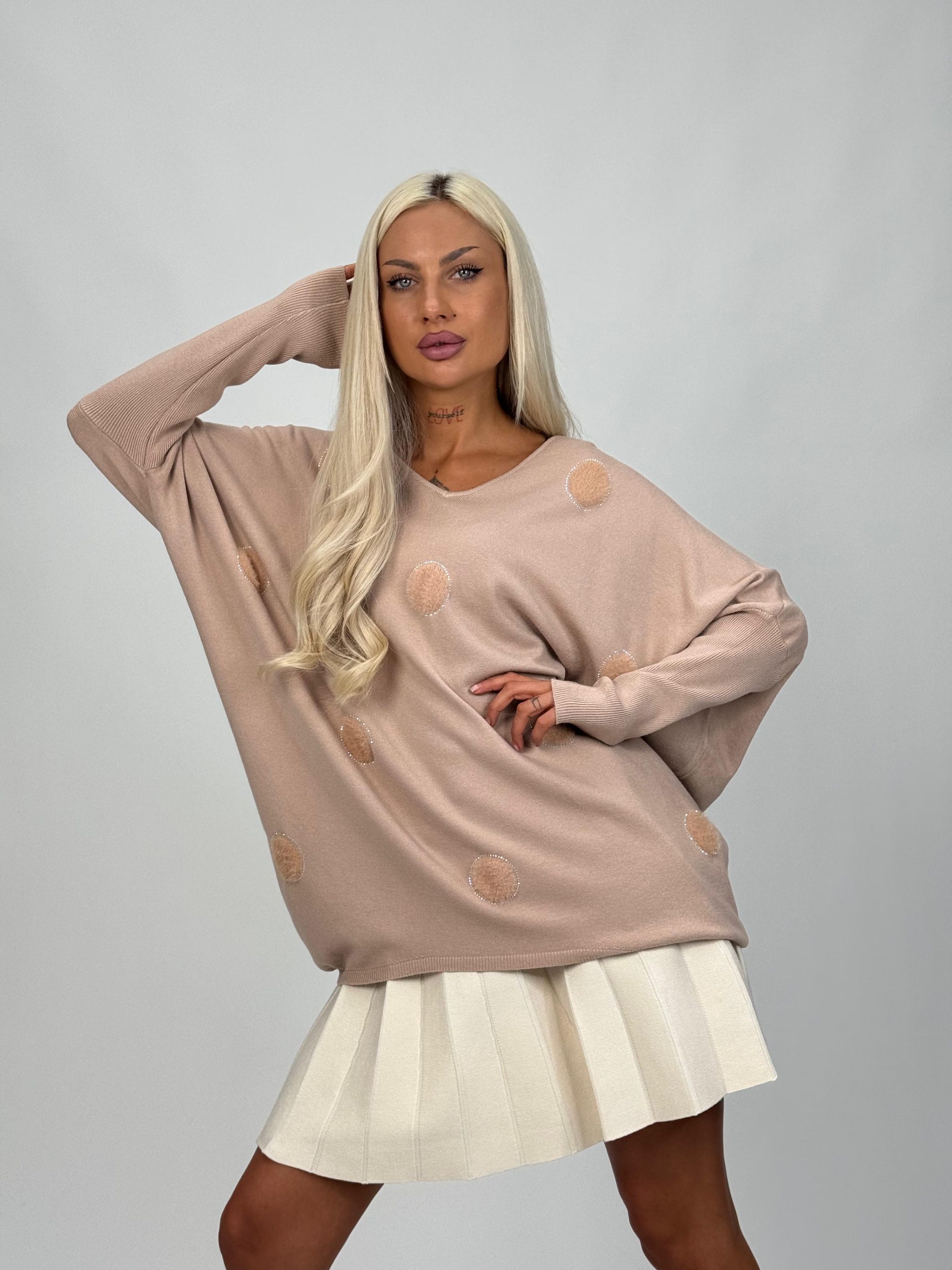 Acest pulover este perfect pentru femeile care apreciază confortul și stilul modern. Croiala oversized asigură lejeritate, iar decolteul în V conferă feminitate și un aer elegant, potrivit pentru diverse ocazii.