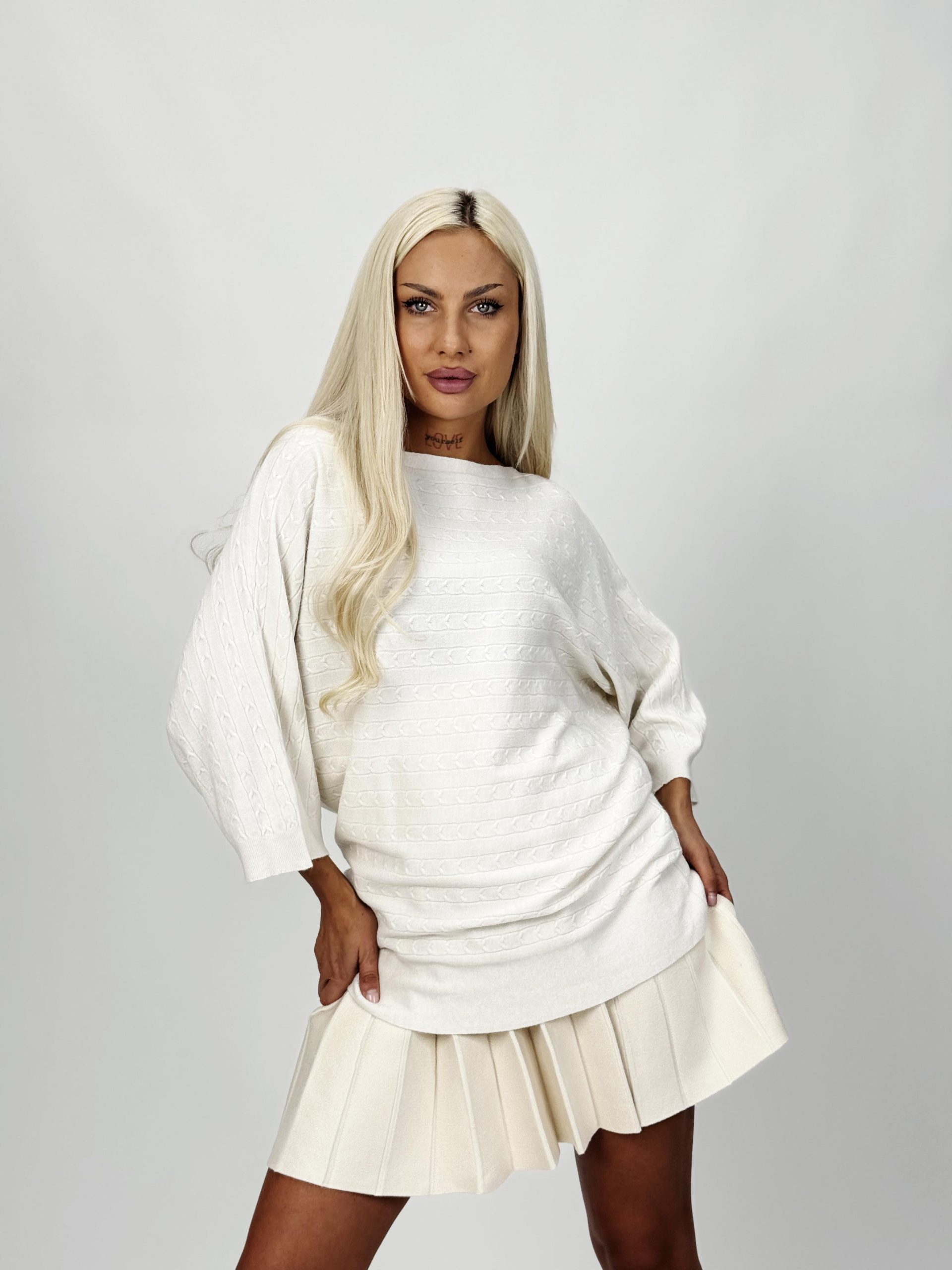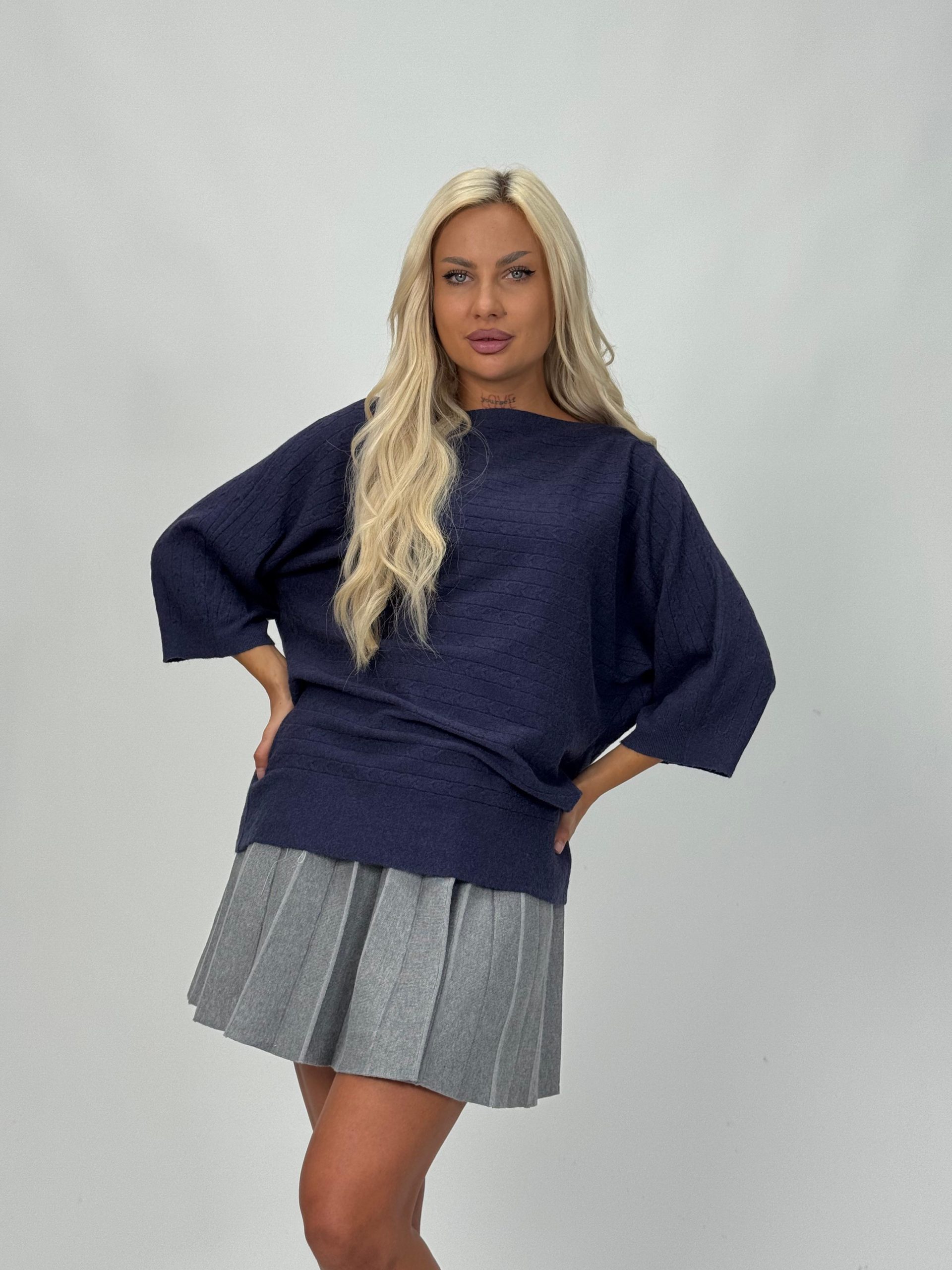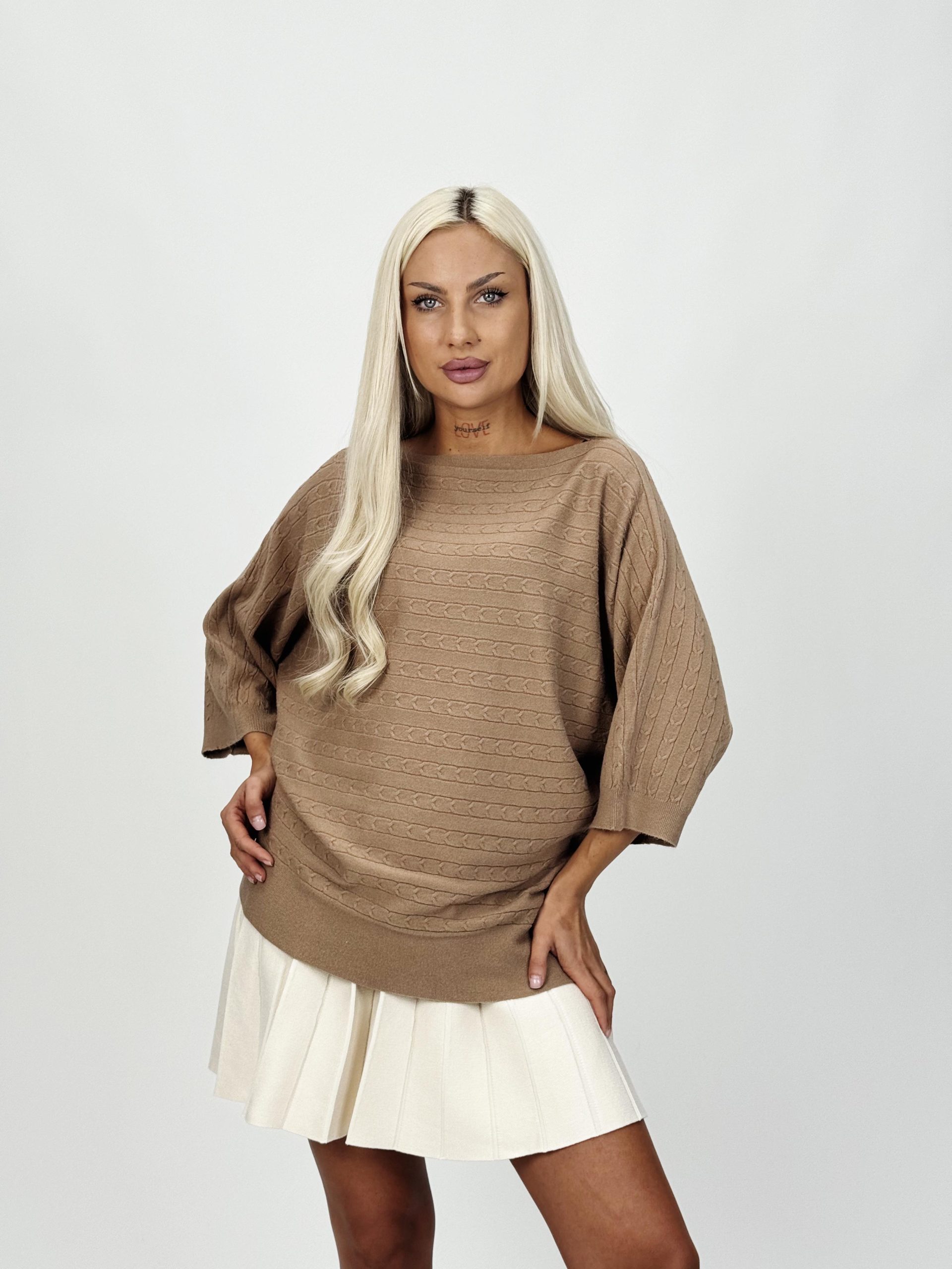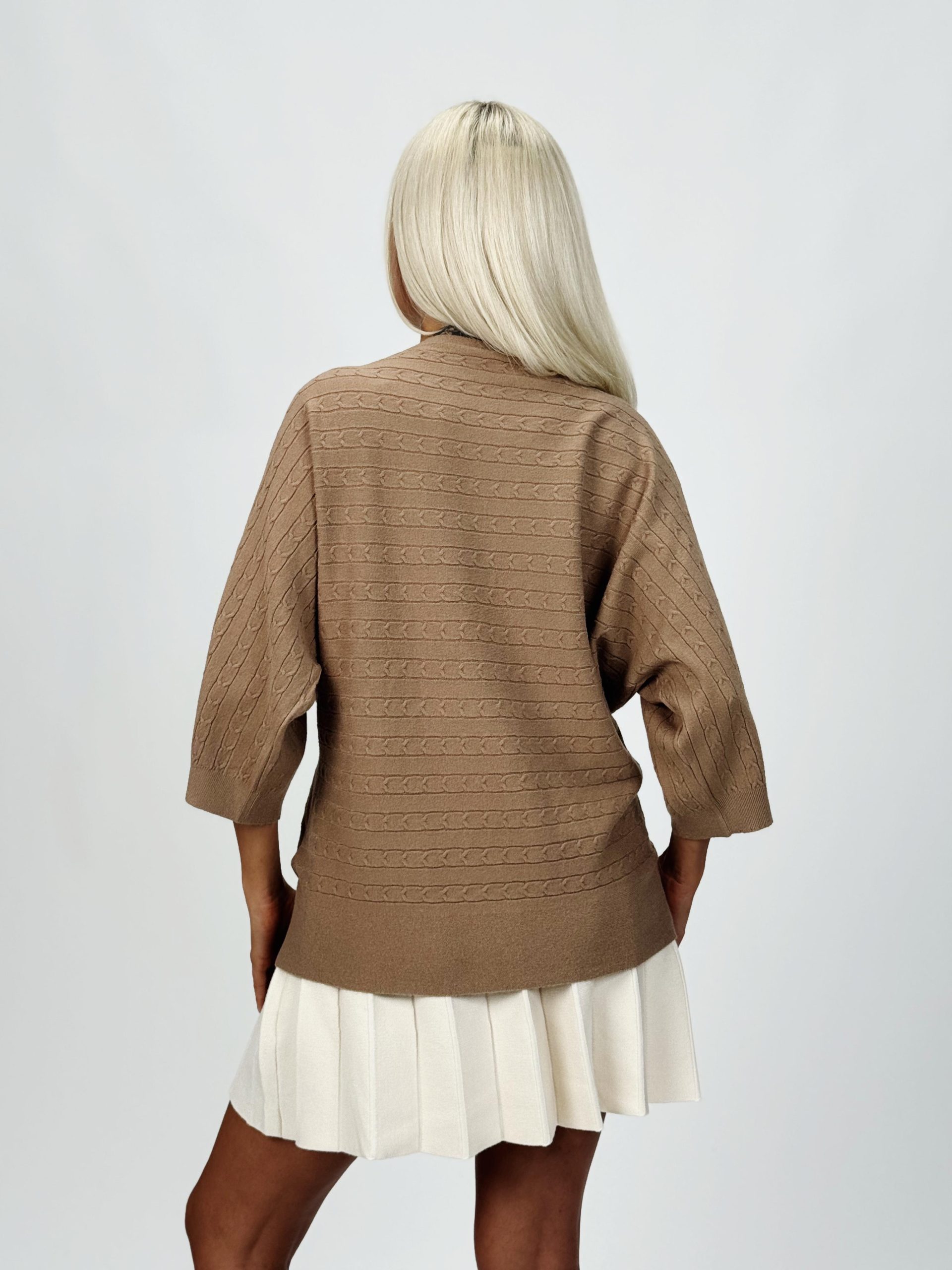 Acest model este ideal pentru femeile care apreciază detaliile și calitatea. Croiala raglan îți conferă lejeritate, iar torsadele creează un design elegant, perfect pentru ținute casual chic sau office.