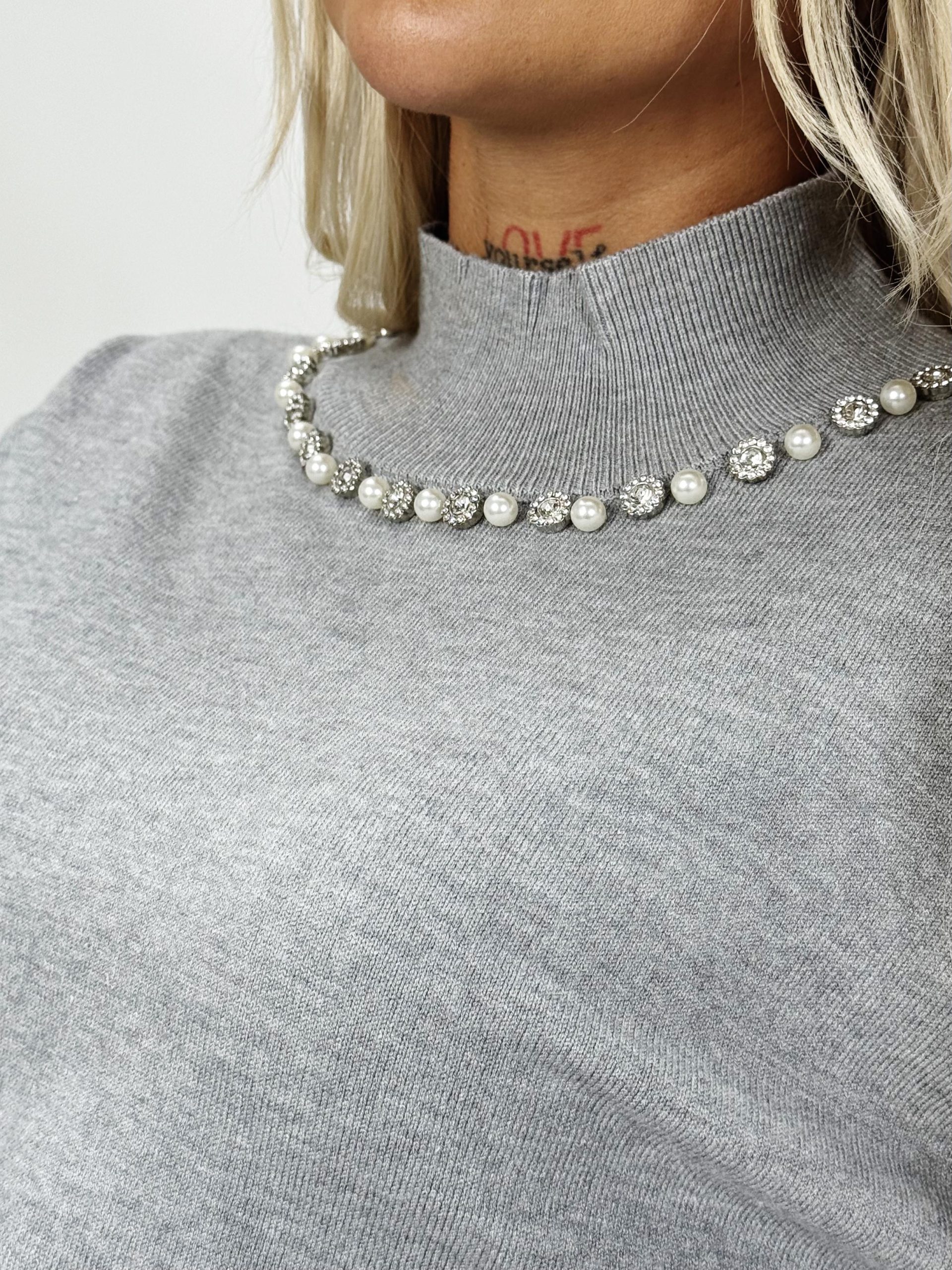 Puloverul rolling accesorizat cu perle face parte din colecția Cato.