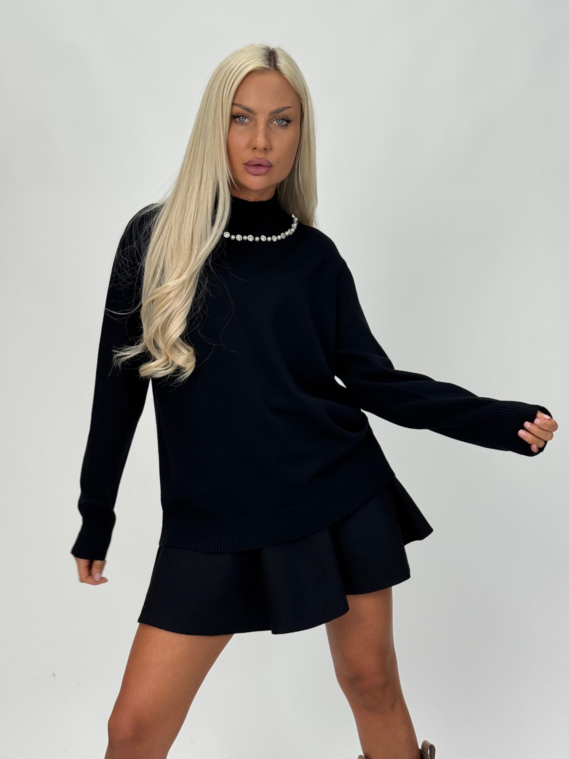 Pulover Rolling Accesorizat cu Perle – Eleganță și Confort