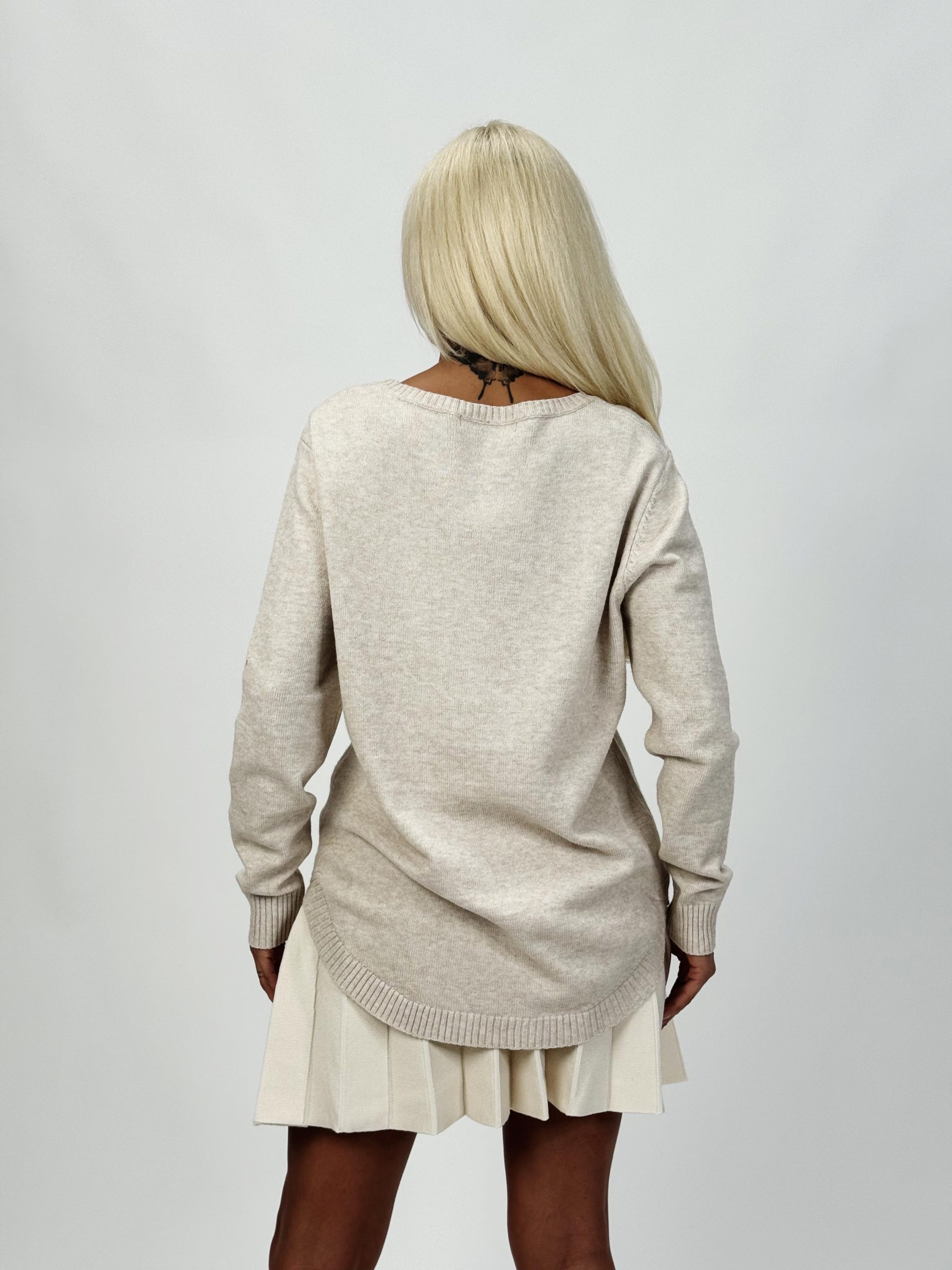 Acest pulover nu este doar confortabil, ci și un element de stil. Inserțiile color adaugă un efect vizual plăcut și original, păstrând totodată lejeritatea și confortul materialului tricotat.