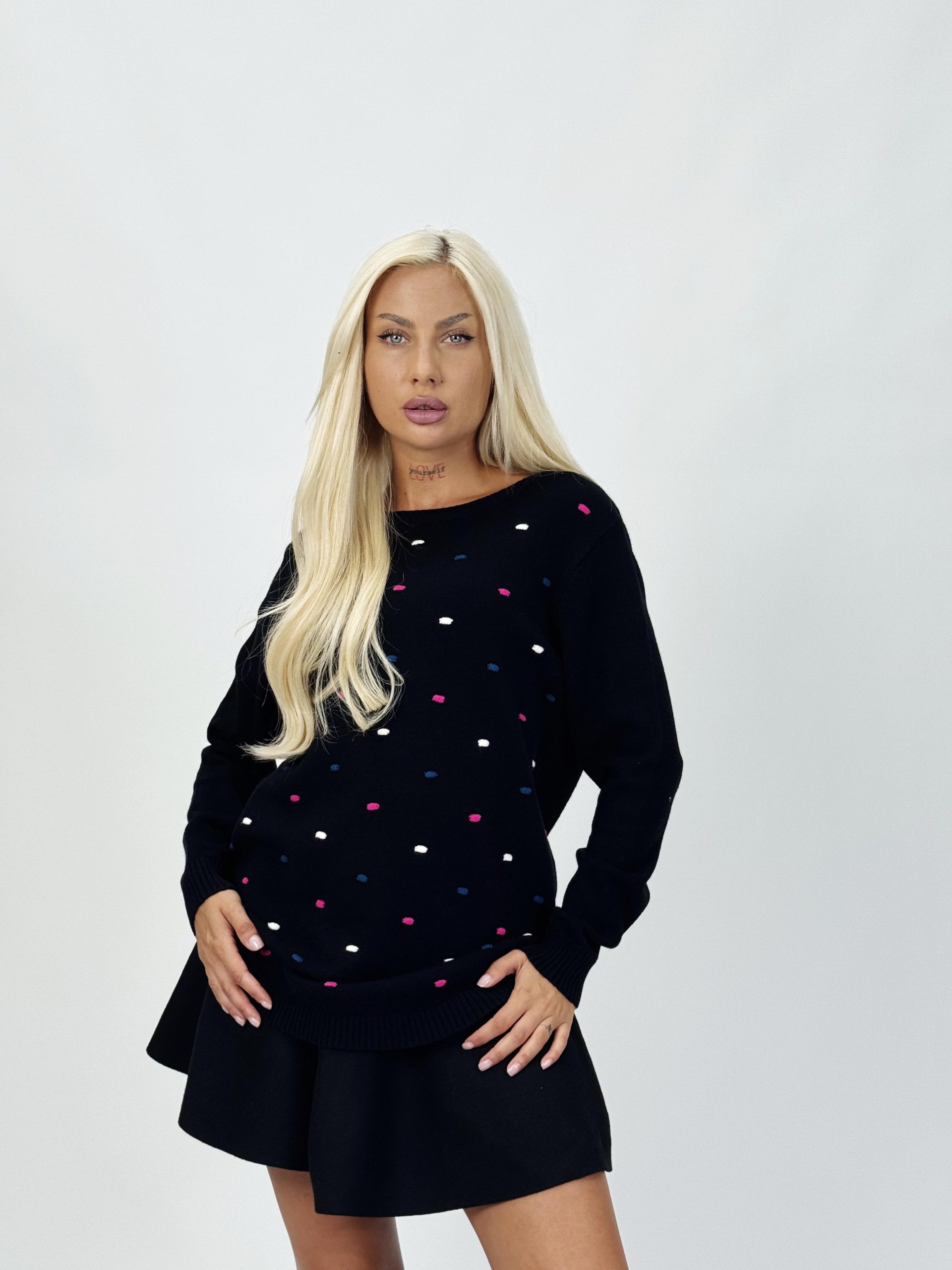 Acest pulover tricotat cu inserții color este alegerea ideală dacă îți dorești să adaugi un strop de culoare garderobei tale. Designul cu inserții colorate transformă puloverul într-o piesă versatilă, perfectă pentru ținute casual, dar și pentru apariții elegante, aducând un aer modern și jovial fiecărei ținute.