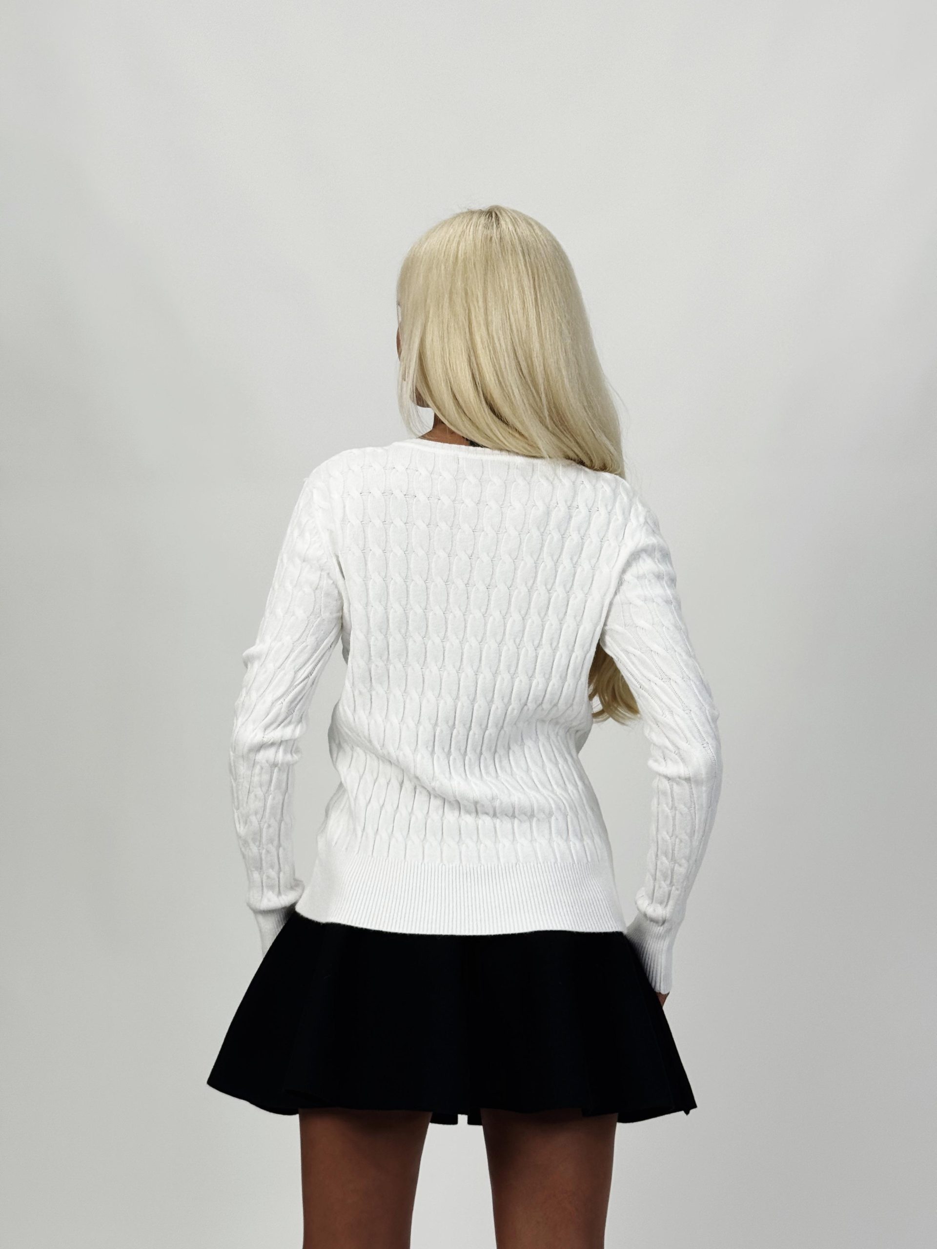Un pulover tricotat în V cu torsade este o piesă atemporală care oferă libertatea de a crea ținute diverse, de la casual la elegante, păstrând mereu un aspect rafinat.