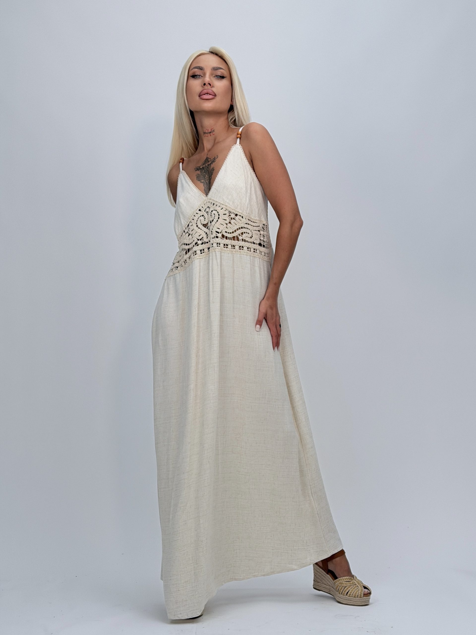 Fii primul care scrii o recenzie pentru „Rochie lungă din în cu broderie în talie”