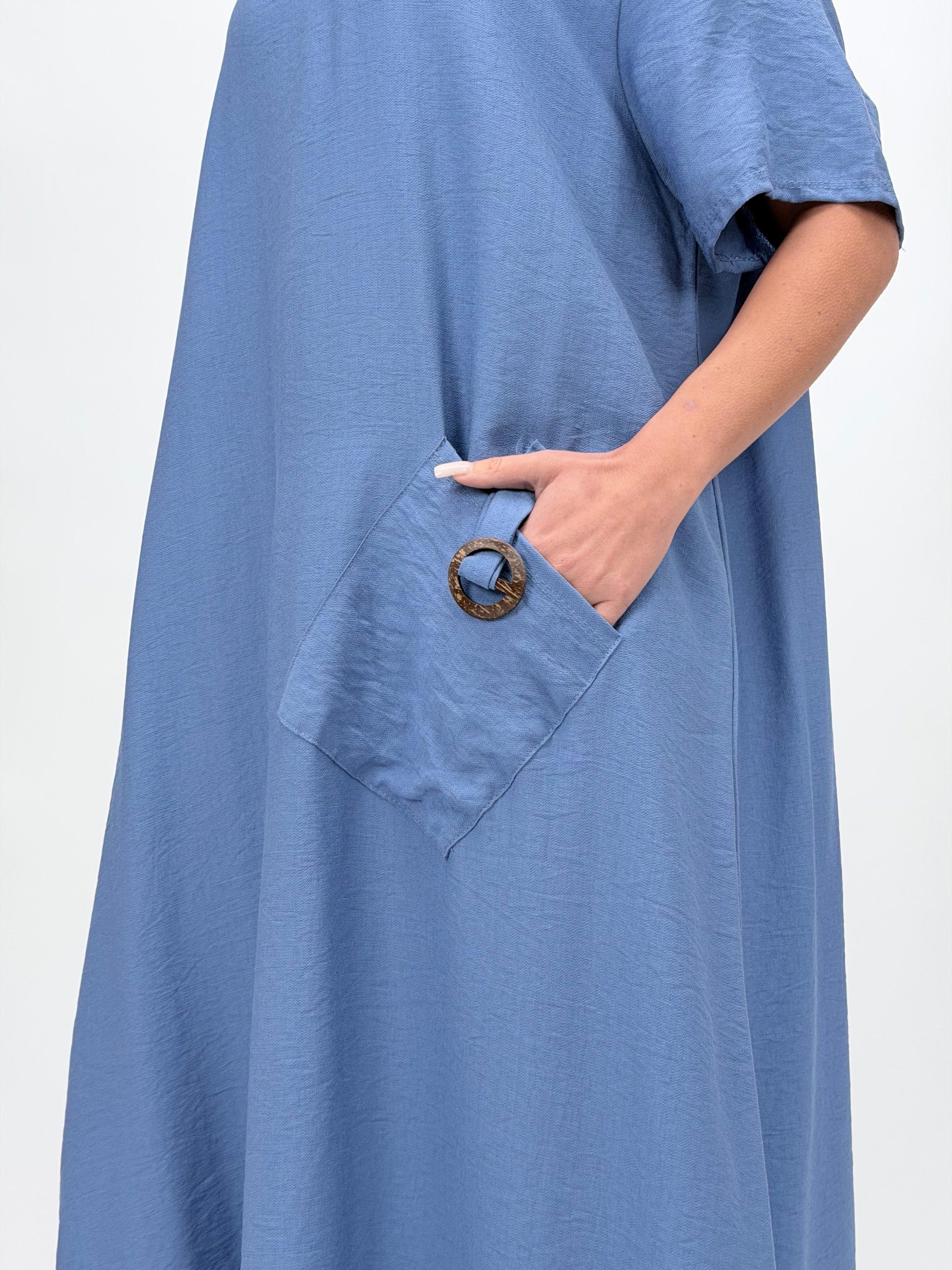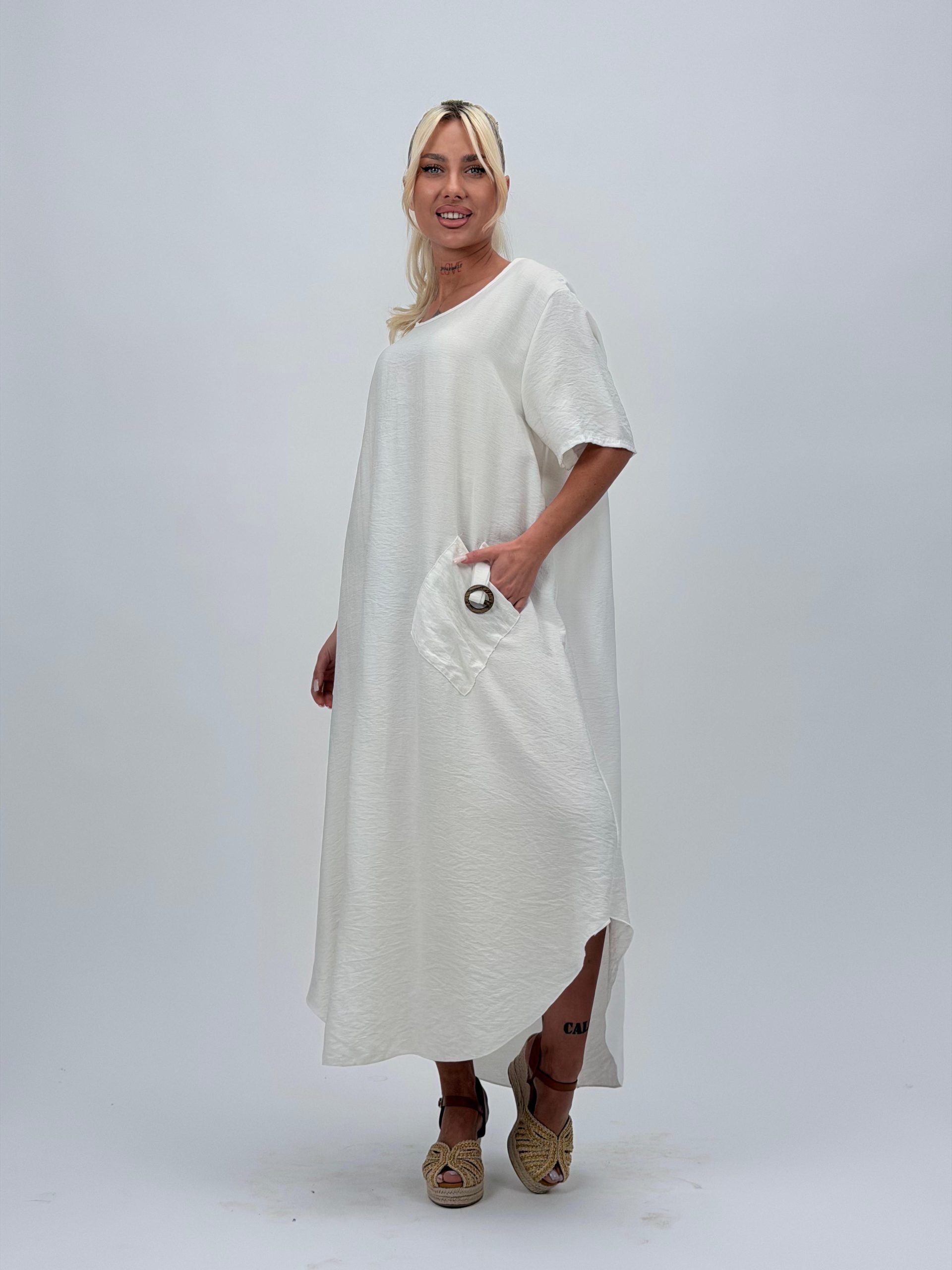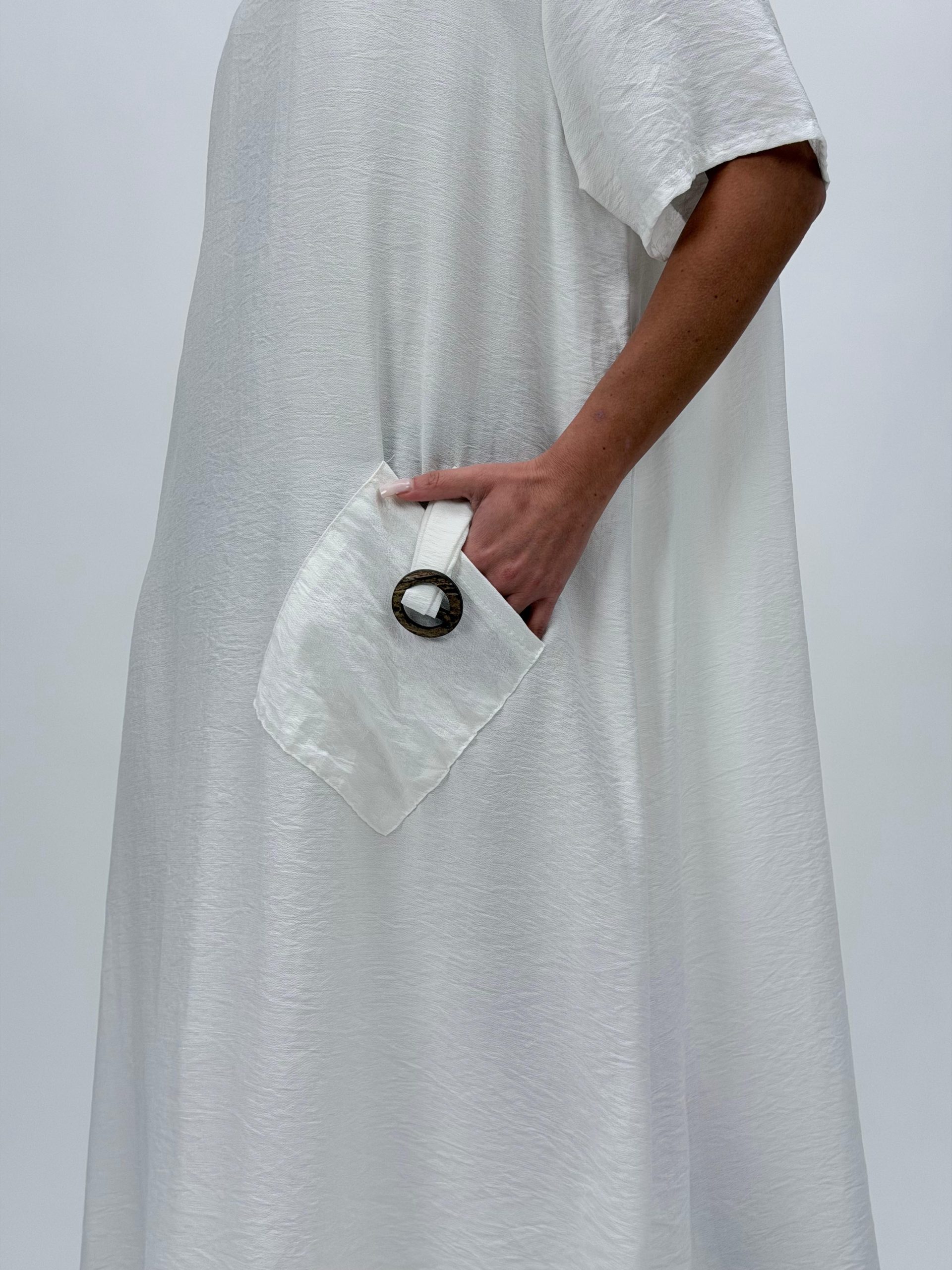 Rochie vaporoasă cu mânecă scurtă și buzunare ascunse