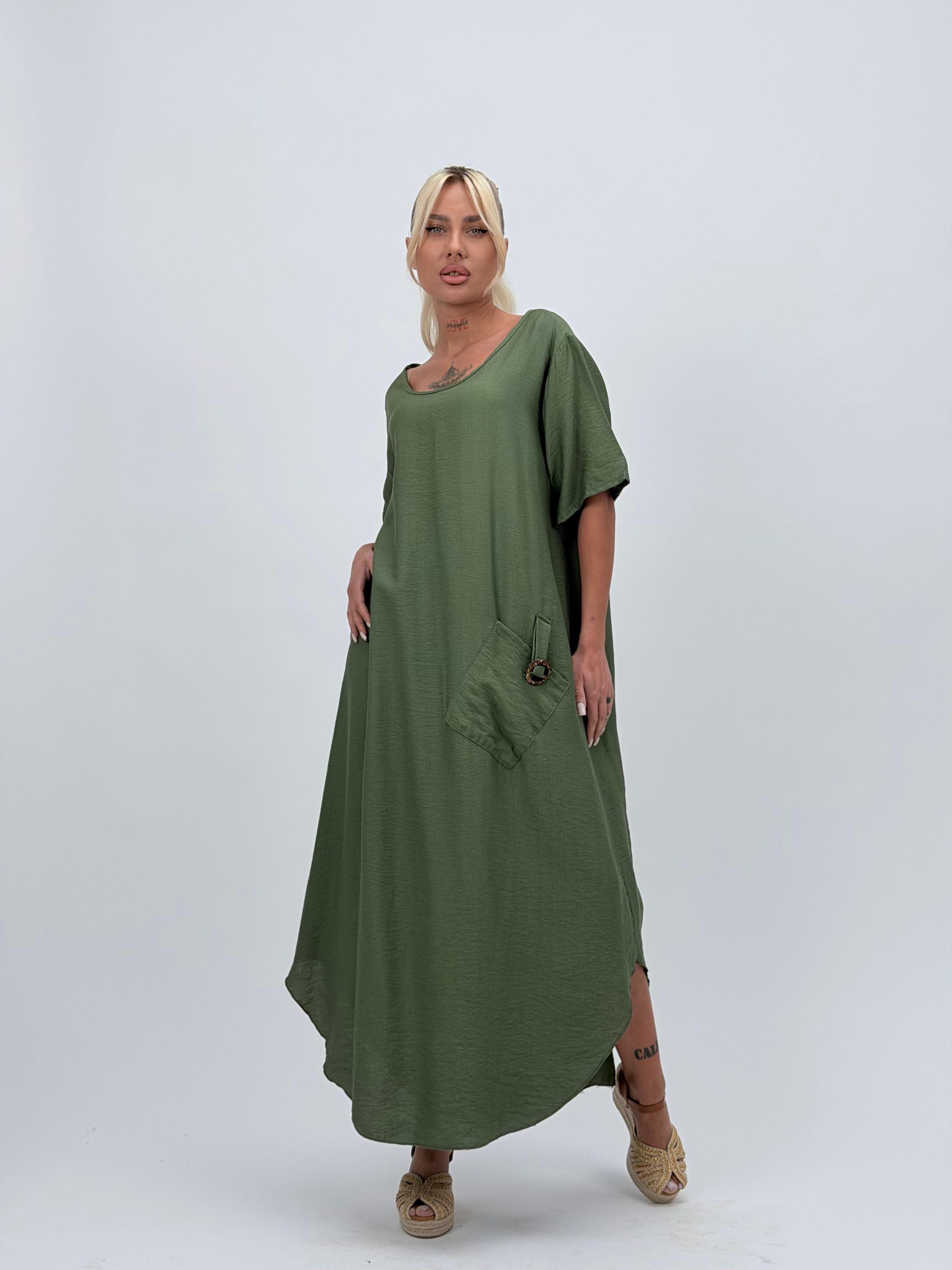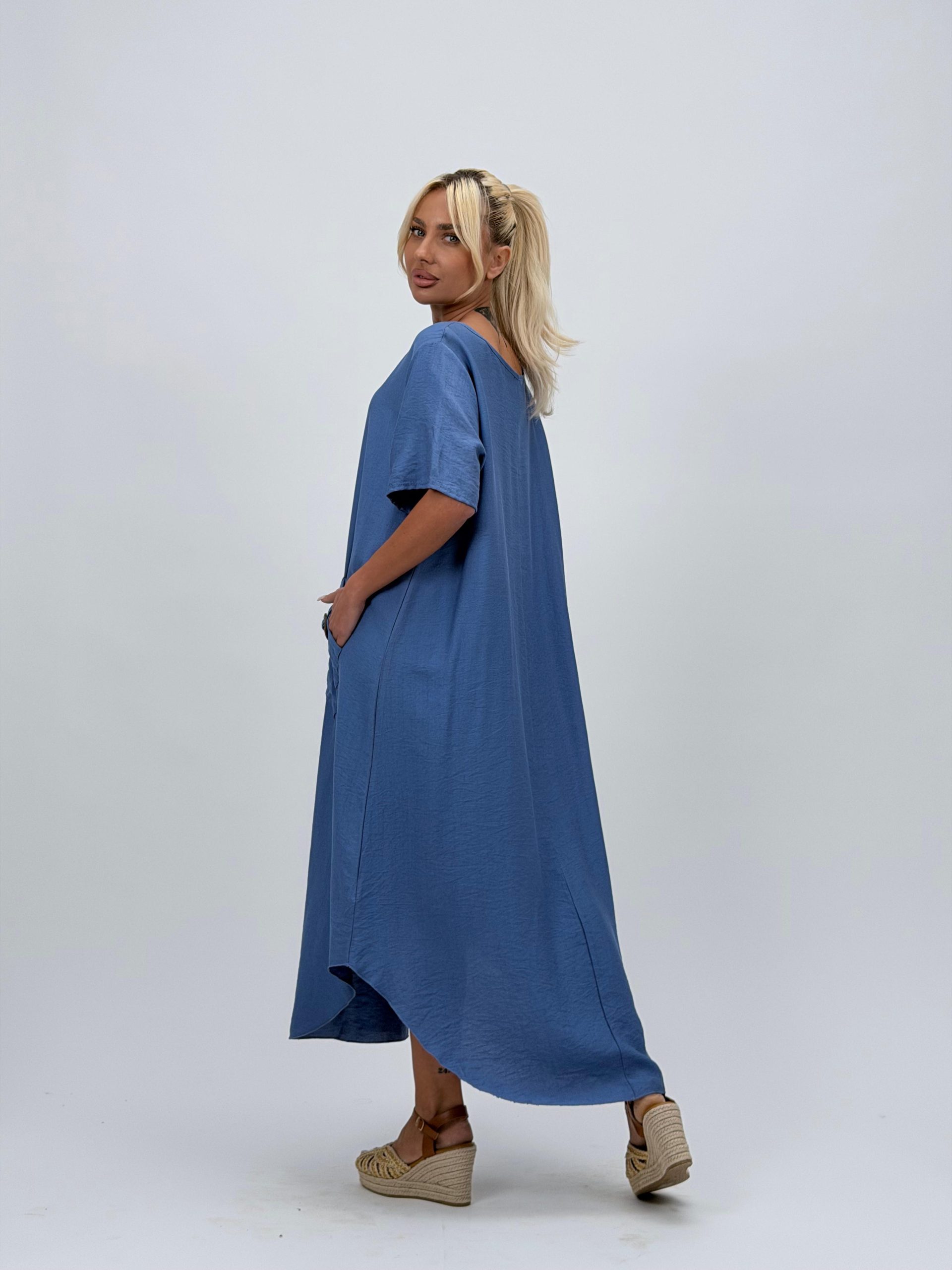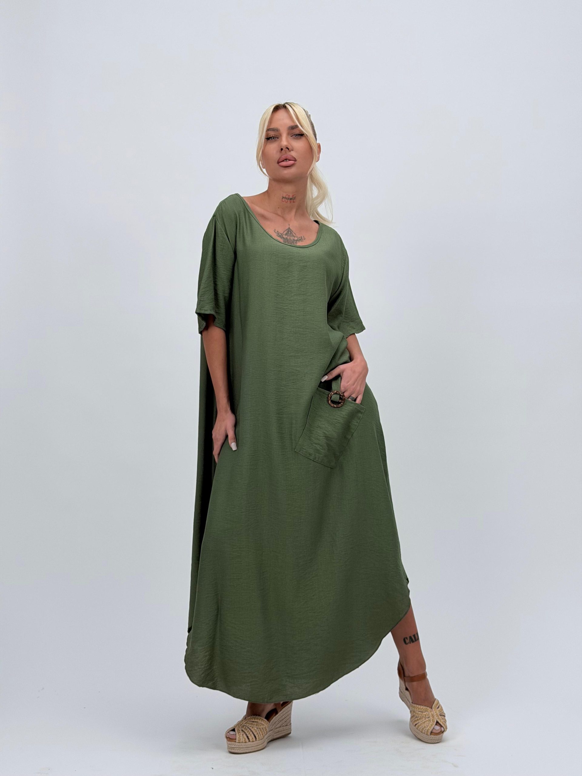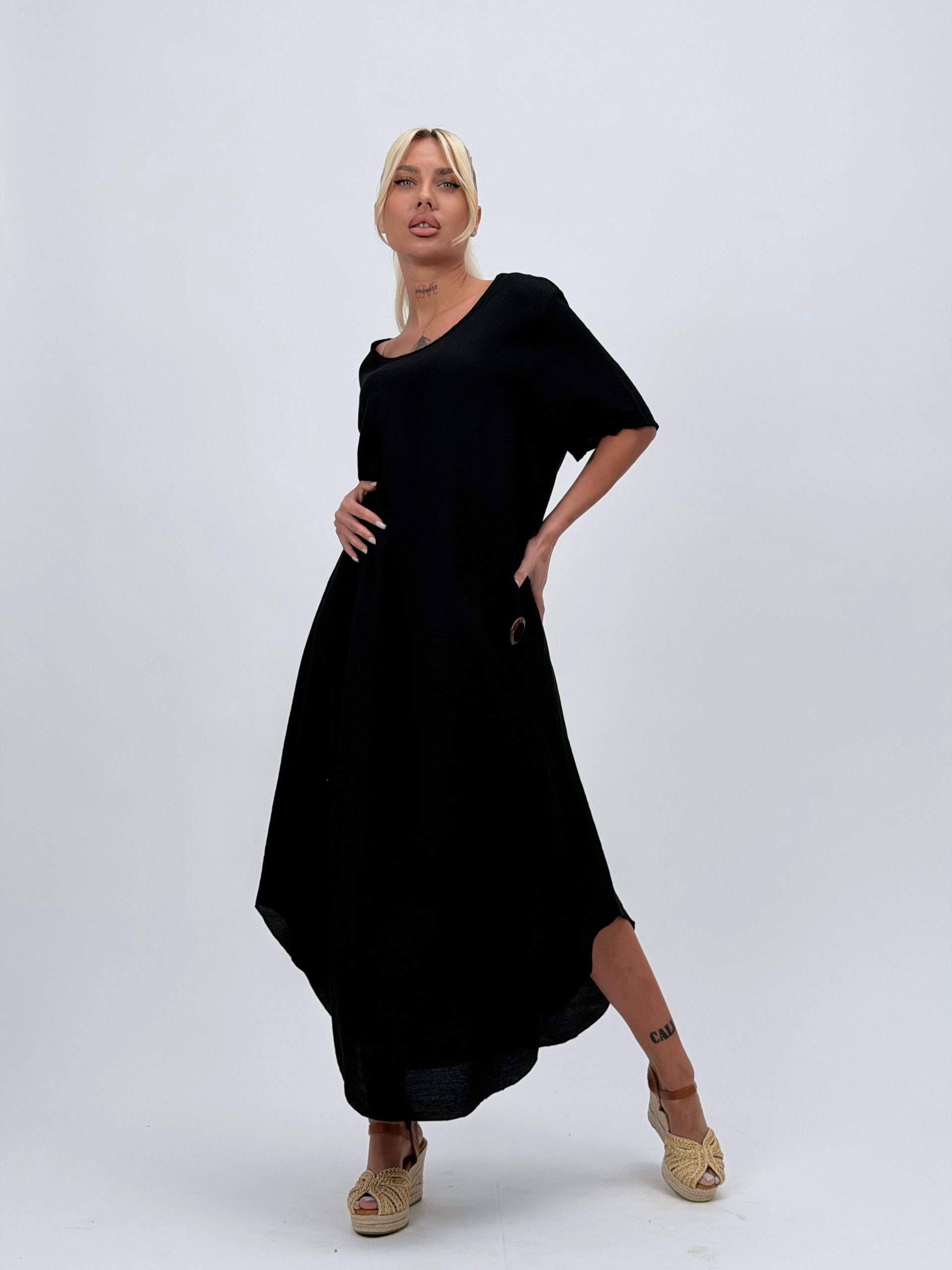 Descoperă rafinamentul și confortul suprem cu această rochie vaporoasă cu mânecă scurtă, o alegere perfectă pentru sezonul cald. Această piesă vestimentară aduce un plus de eleganță și versatilitate garderobei tale, fiind ideală pentru diverse ocazii.
