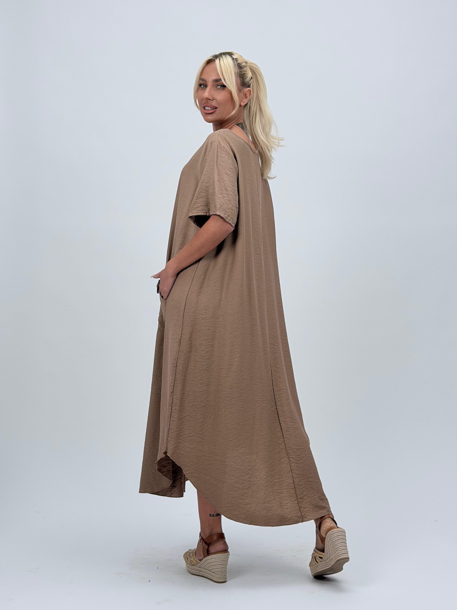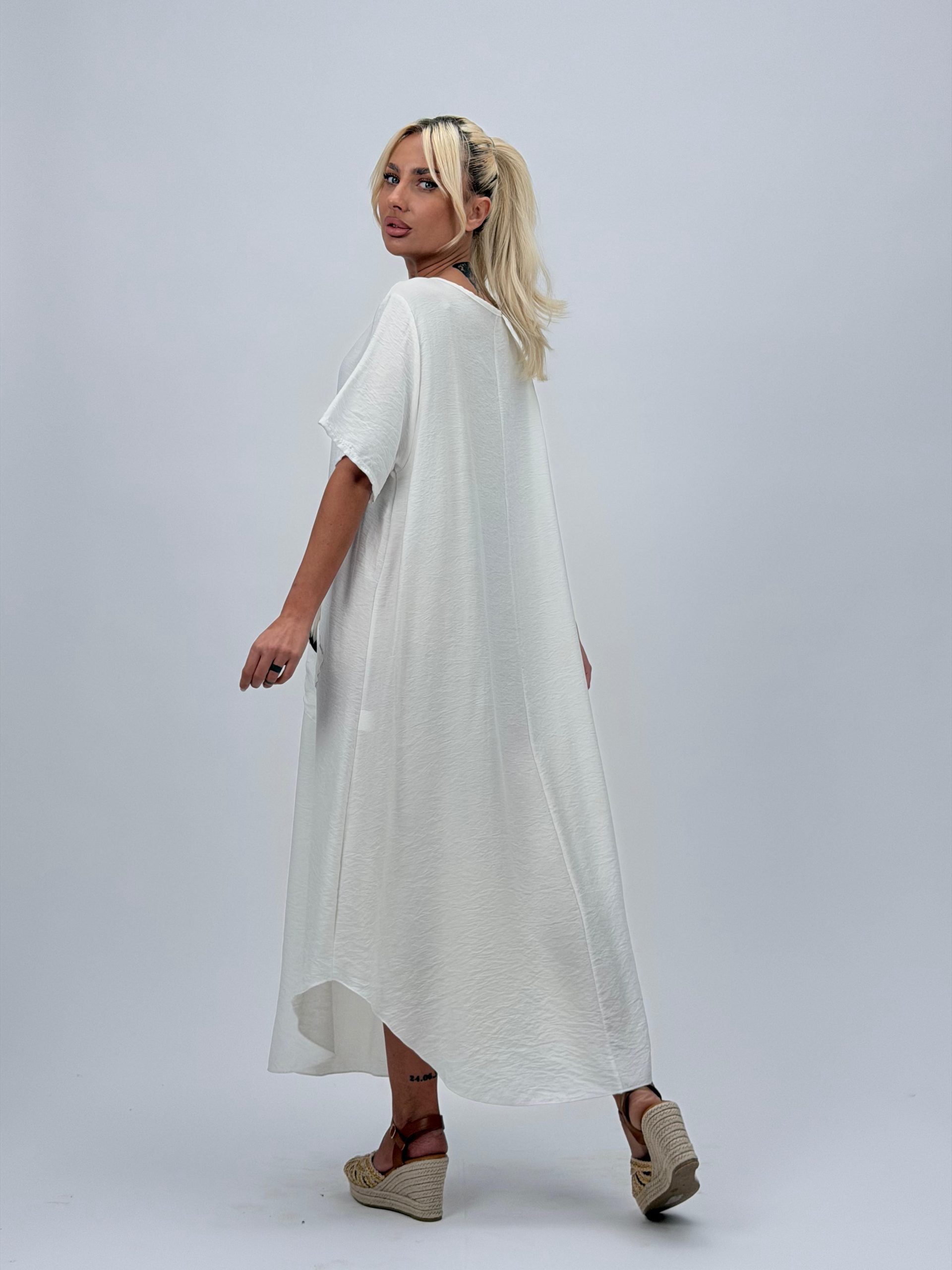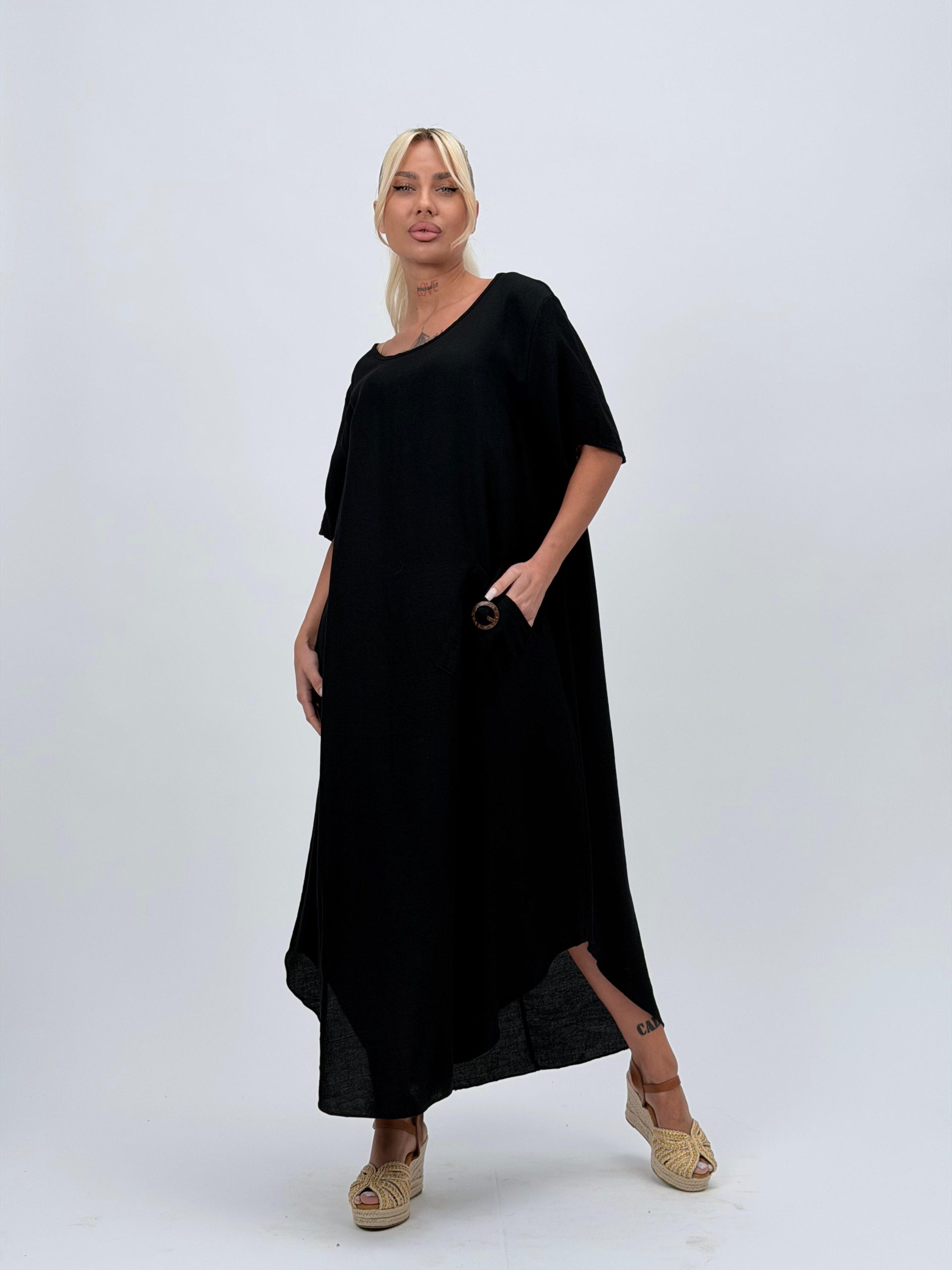Descoperă rafinamentul și confortul suprem cu această rochie vaporoasă cu mânecă scurtă, o alegere perfectă pentru sezonul cald. Această piesă vestimentară aduce un plus de eleganță și versatilitate garderobei tale, fiind ideală pentru diverse ocazii.