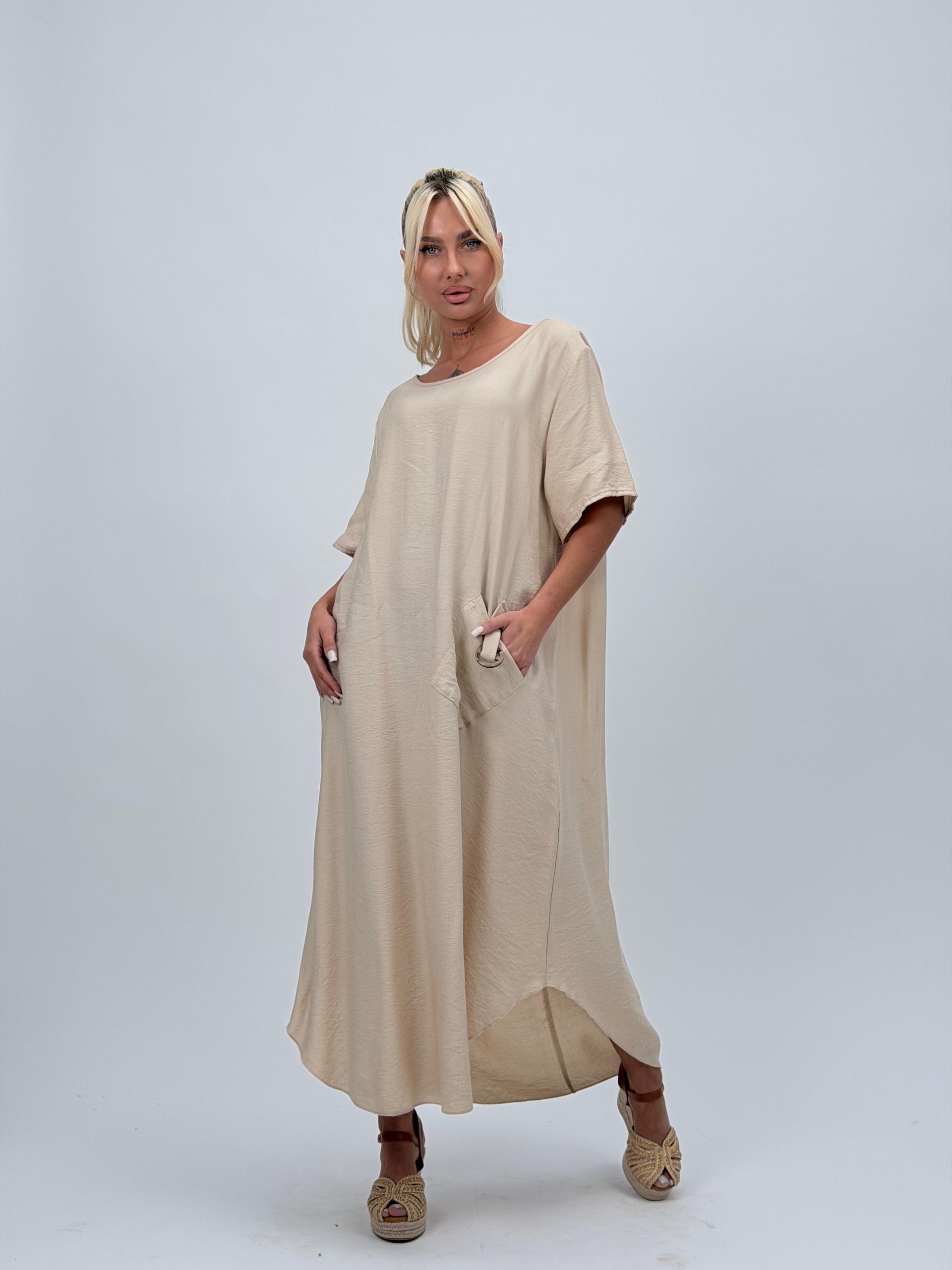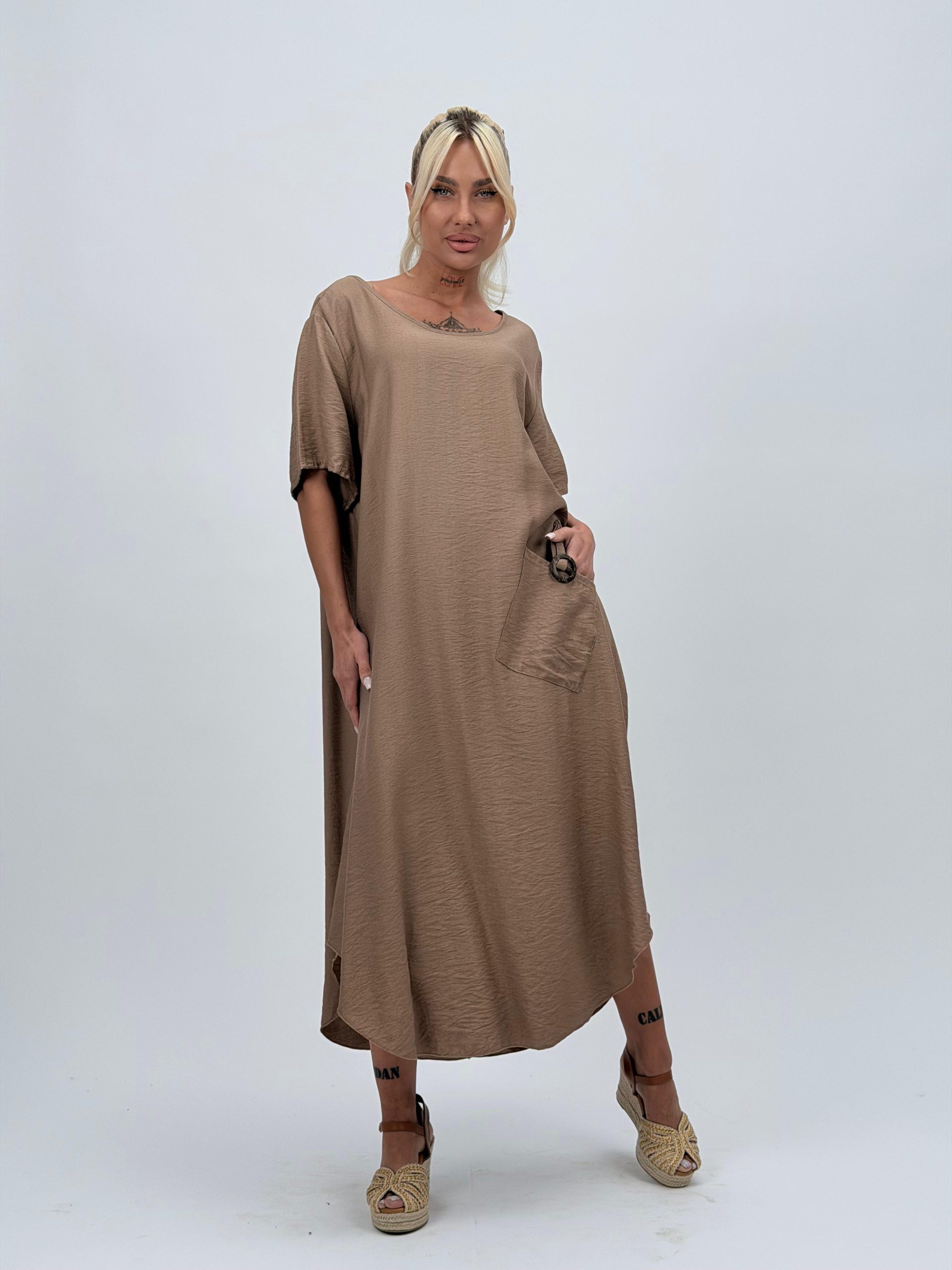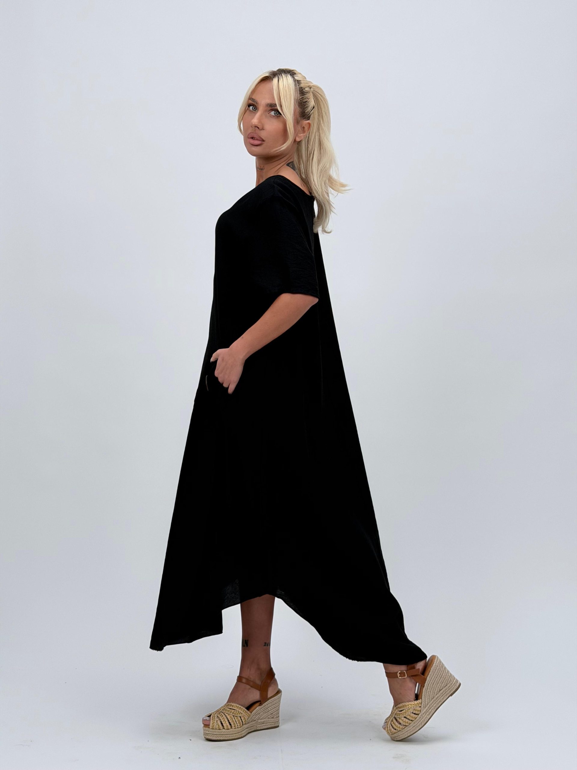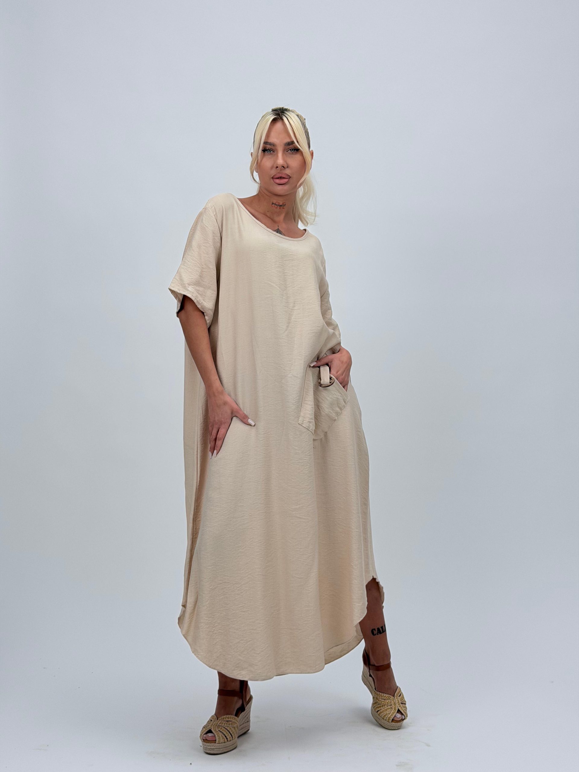 Descoperă rafinamentul și confortul suprem cu această rochie vaporoasă cu mânecă scurtă, o alegere perfectă pentru sezonul cald. Această piesă vestimentară aduce un plus de eleganță și versatilitate garderobei tale, fiind ideală pentru diverse ocazii.