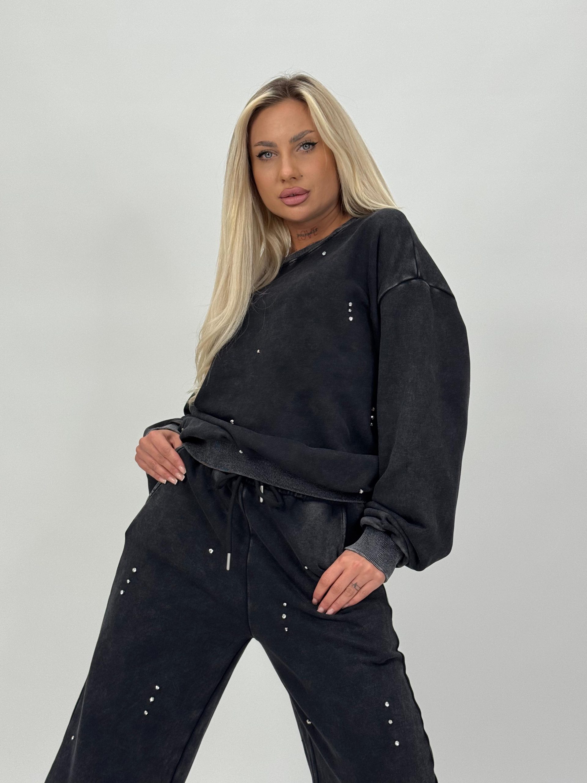 Set Bluză și Pantalon din Jerse cu Ștrasuri – Confort și Stil Urban