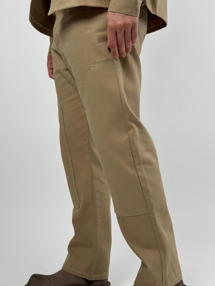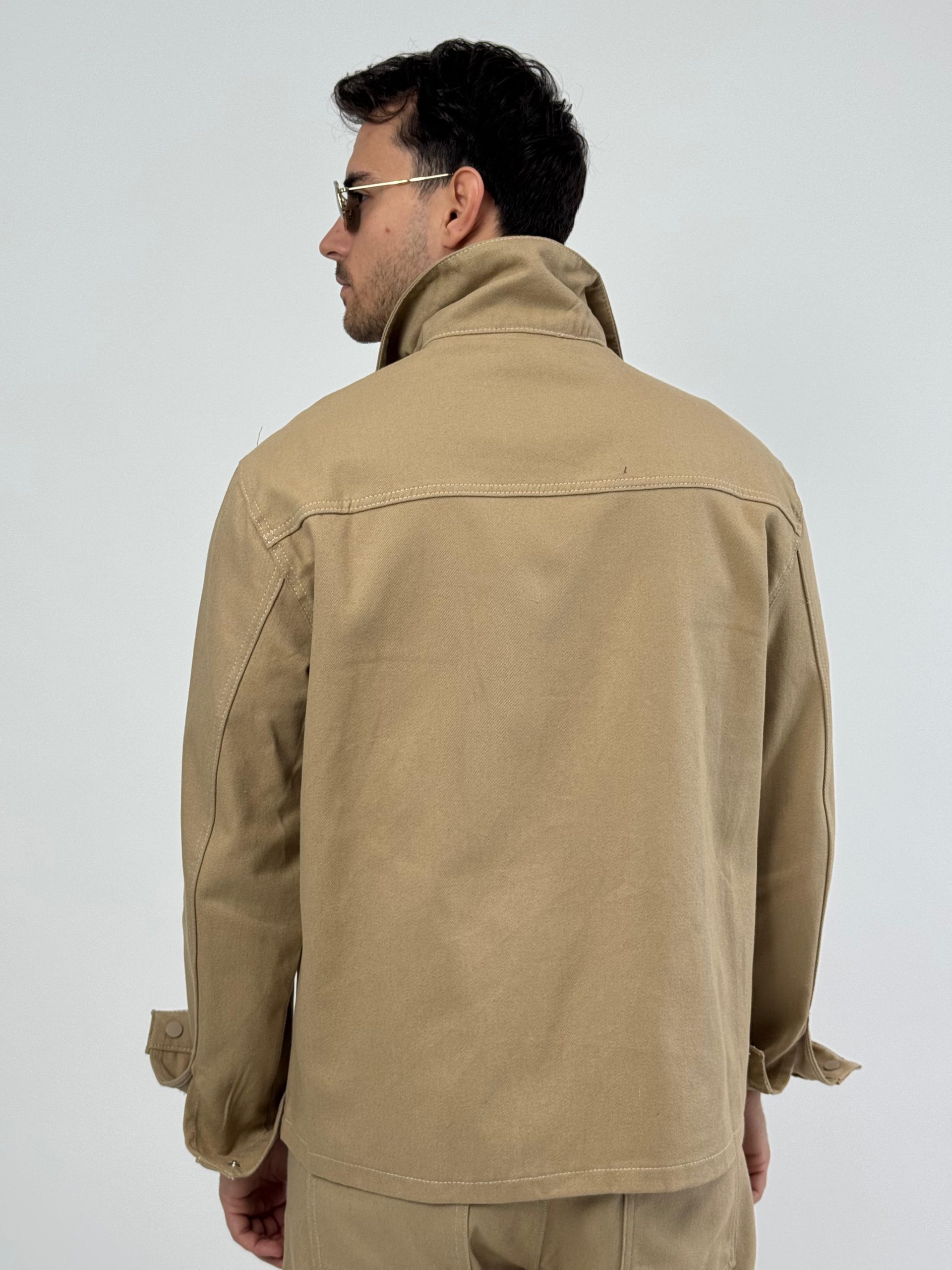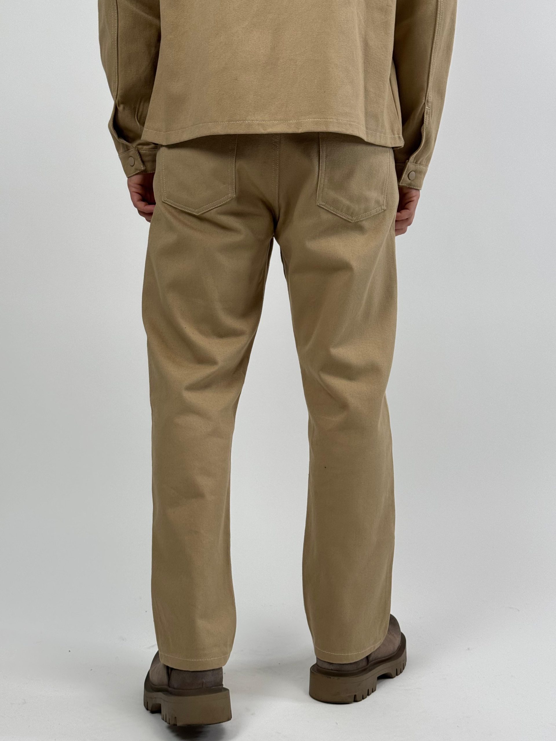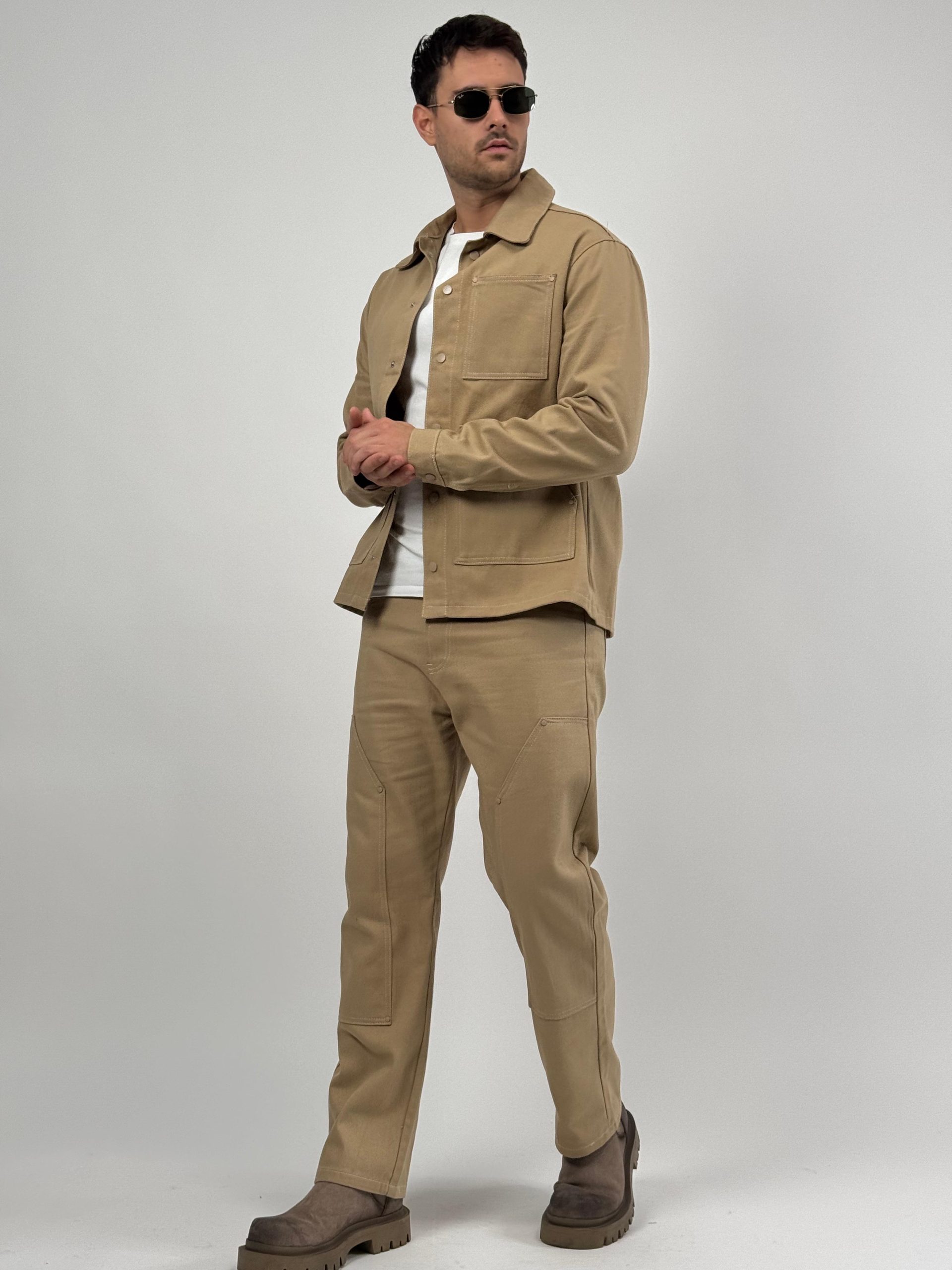 Spre deosebire de denimul clasic rigid, acest set este confecționat dintr-un denim bej moale, cu o textură plăcută și maleabilă, perfect adaptat pentru purtare zilnică. Materialul are o grosime ideală pentru a fi purtat tot timpul anului, oferind confort fără a sacrifica structura pieselor.