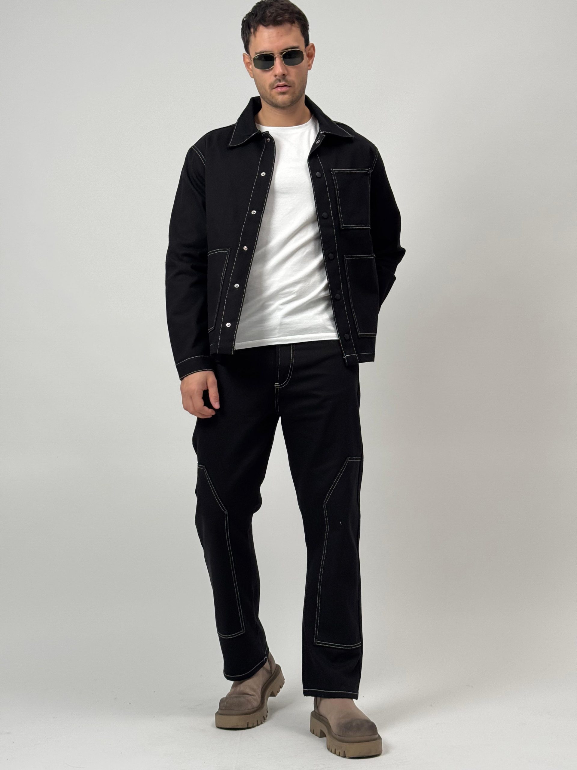 Setul este confecționat dintr-un denim moale, cu o grosime medie, ideal pentru purtare în orice anotimp. Materialul este ușor flexibil, dar își păstrează forma și oferă libertate de mișcare, indiferent de activitățile tale zilnice.