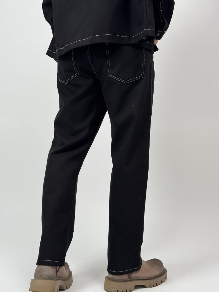 Pantalonii au o linie dreaptă și o talie medie, fiind prevăzuți cu buzunare laterale și buzunare la spate. Croiala este relaxată, fără a fi largă, oferind echilibrul perfect între confort și aspect bine structurat. Închiderea este realizată cu fermoar și nasture, pentru o fixare sigură și practică.