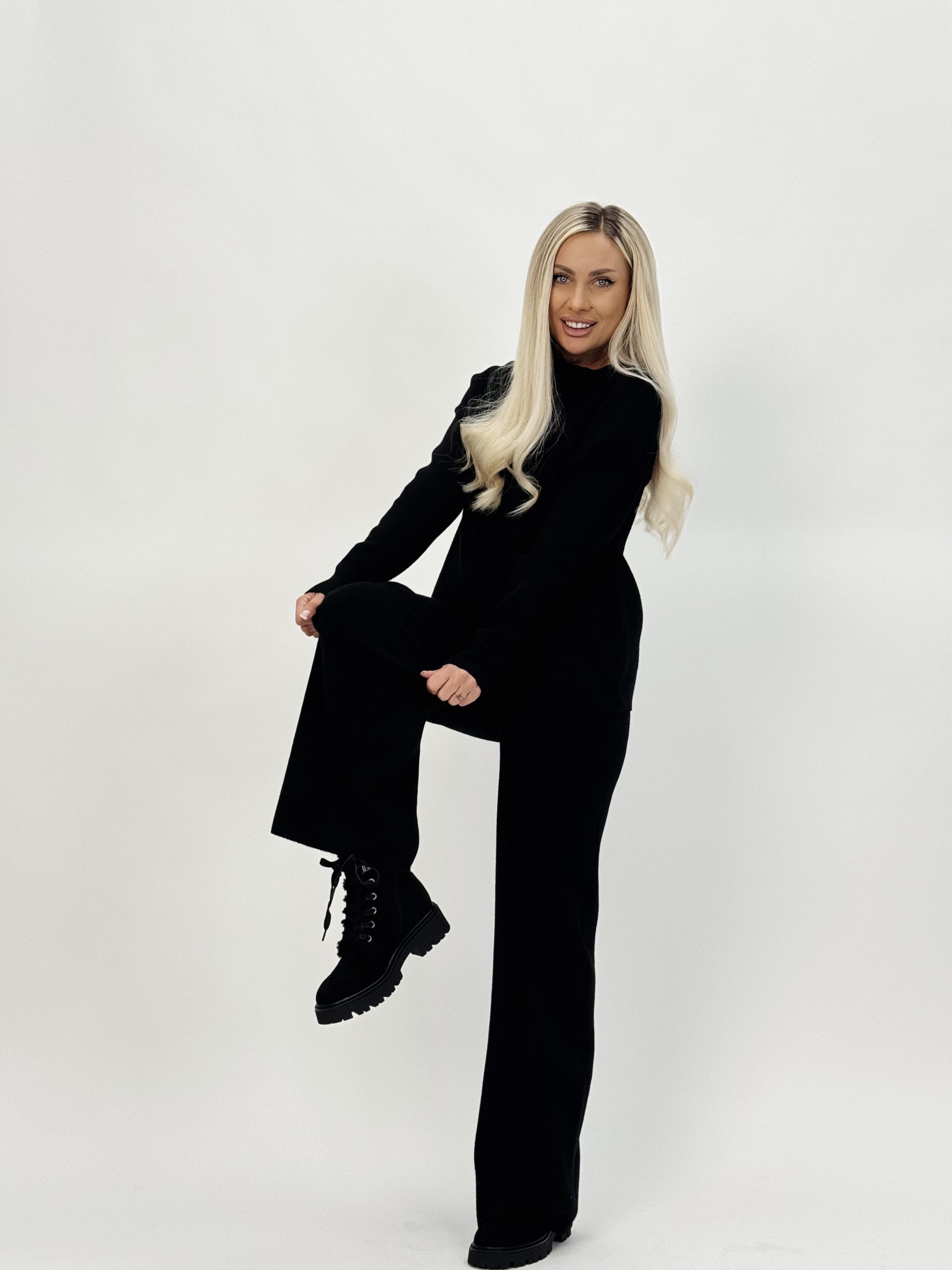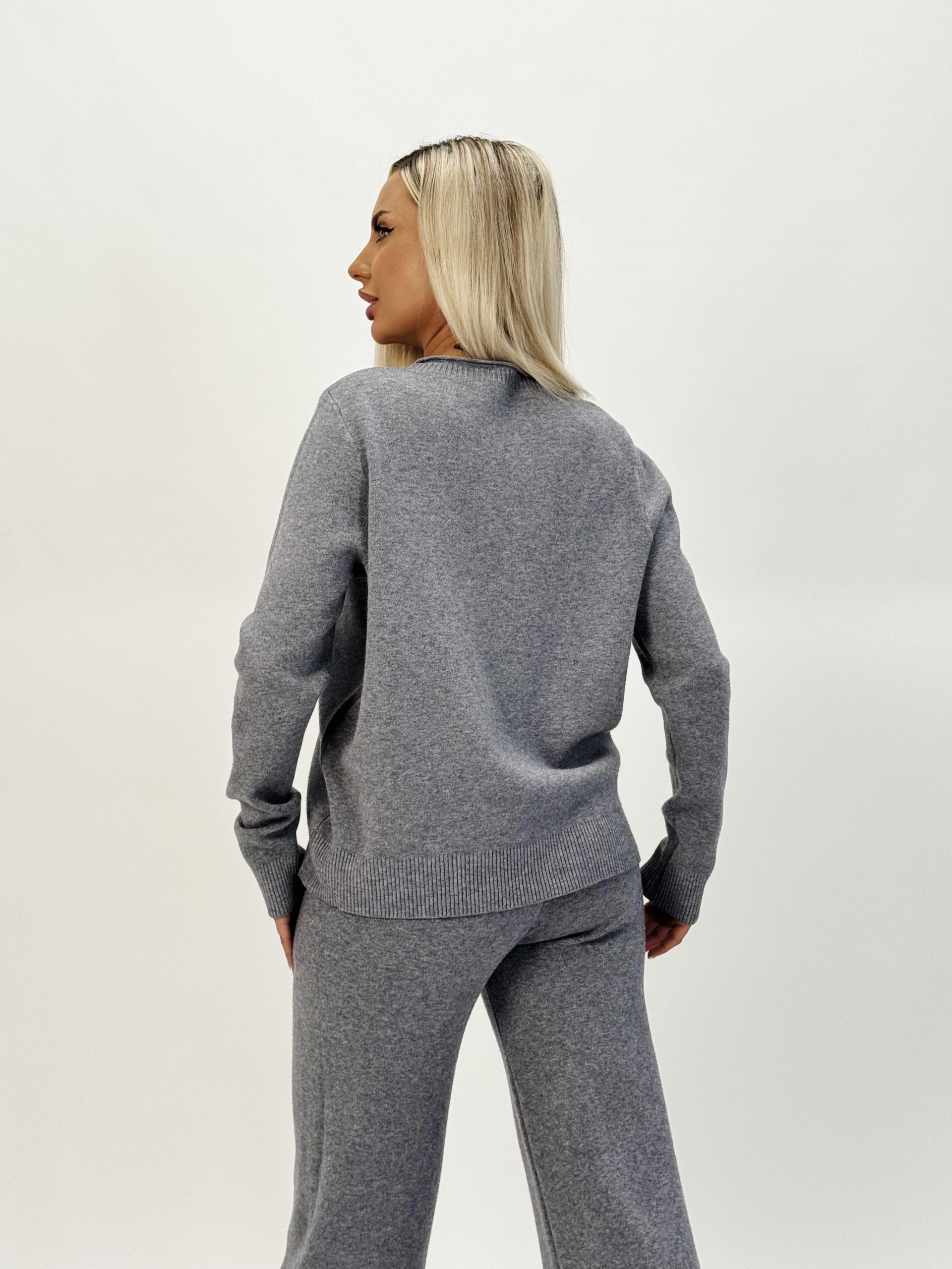 Setul din tricot este o alegere practică și elegantă, perfectă pentru sezonul rece. Combină stilul rafinat cu confortul absolut, oferind un look echilibrat și modern în orice context.