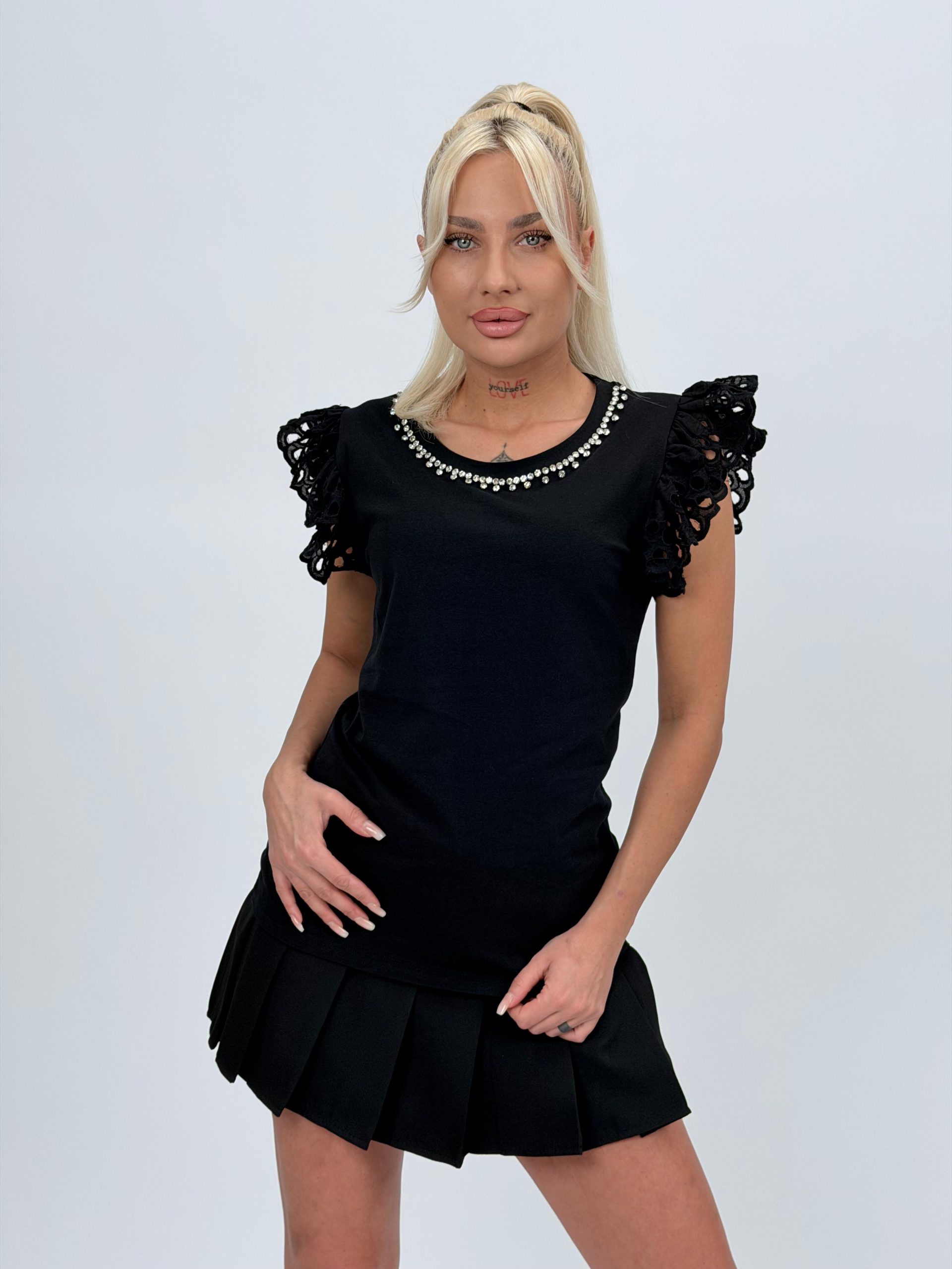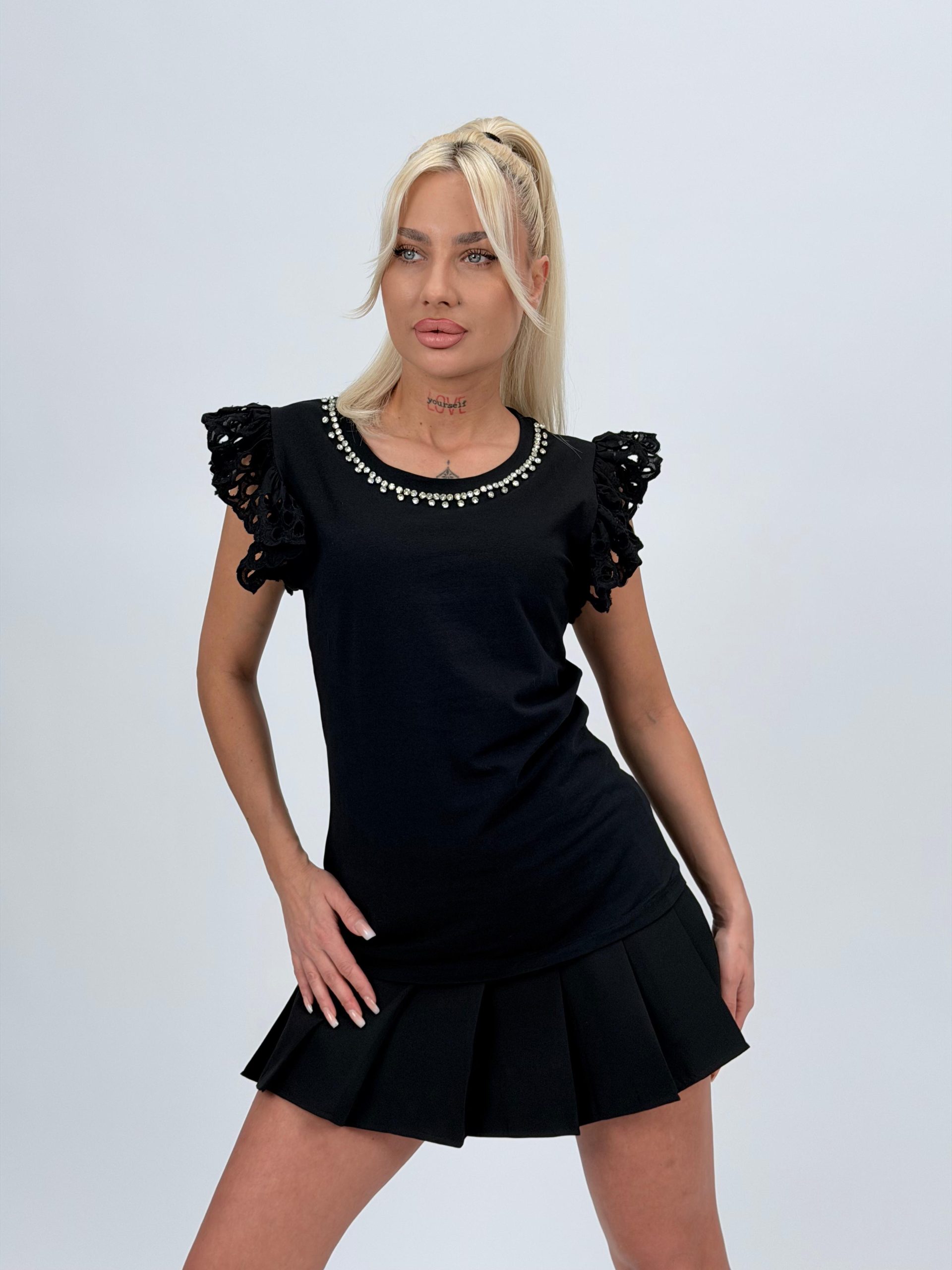 Tricou din bumbac accesorizat cu ștrasuri Prețul inițial a fost: 349,90 lei.Prețul curent este: 149,90 lei.
