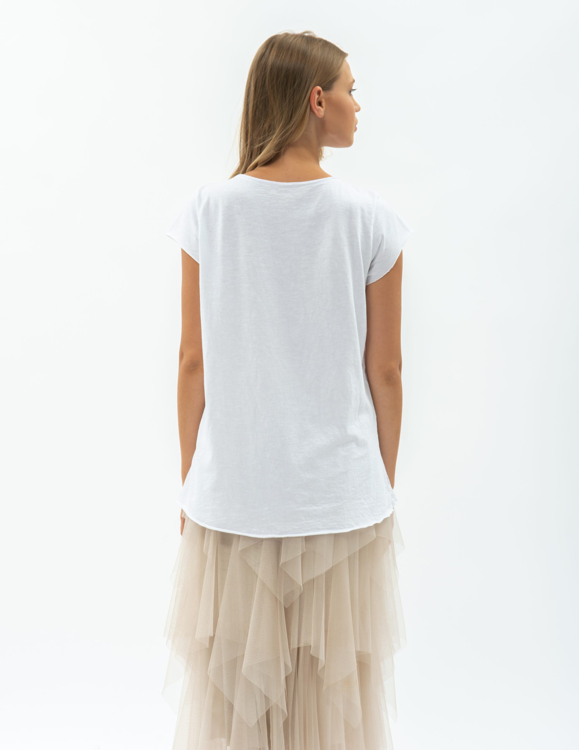 Tricou din bumbac cu model pene Prețul inițial a fost: 169,90 lei.Prețul curent este: 99,90 lei.