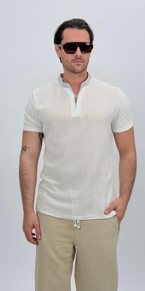 Tricou din in cu guler tunică