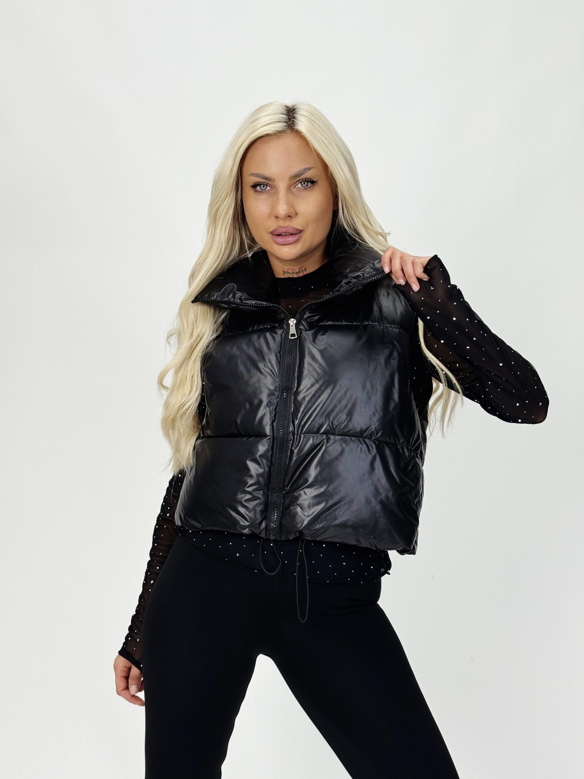Vestă Scurtă din Fâș Lucios – Confort și Stil Urban